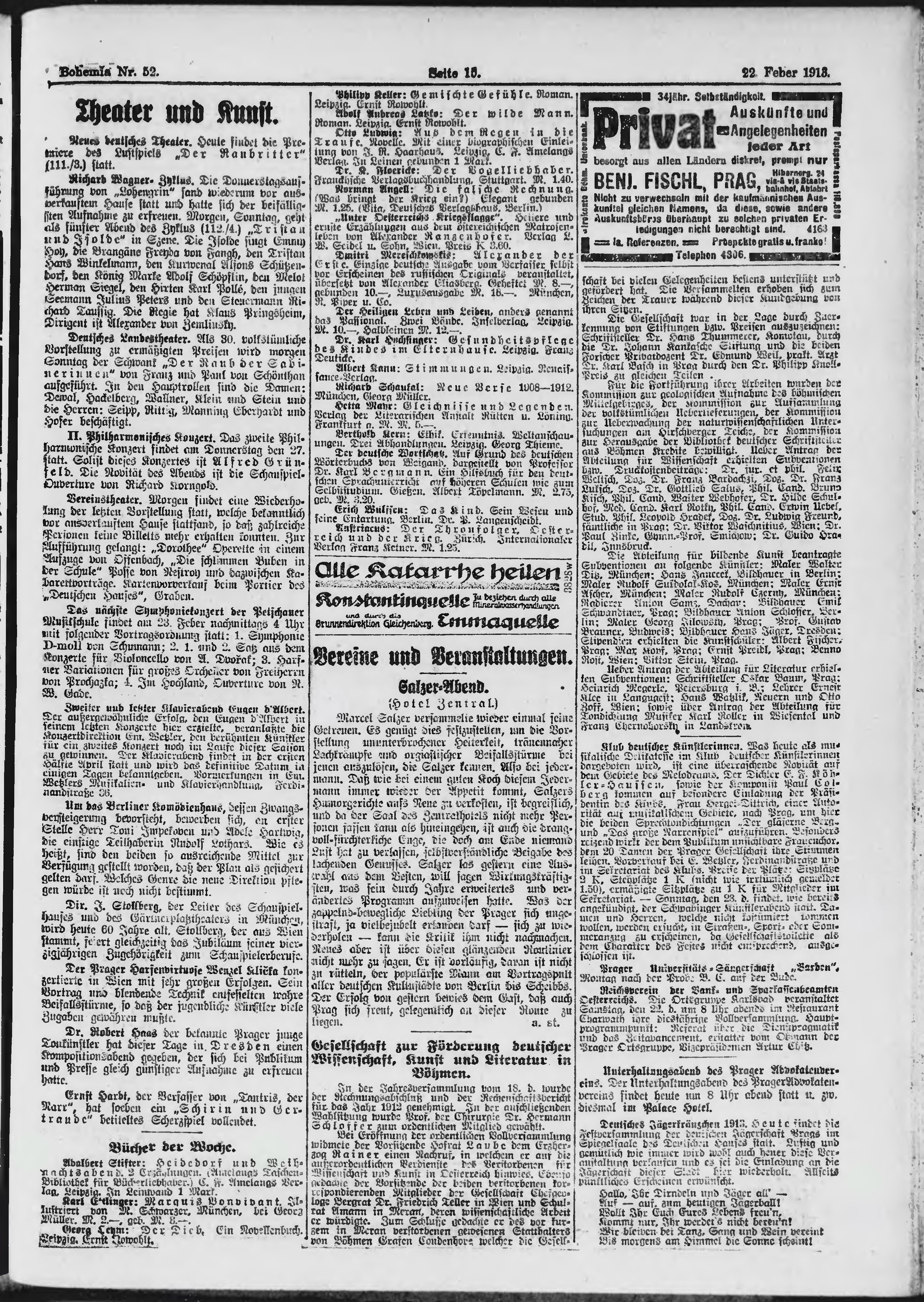 * Datum vydání výtisku: 22.2.1913 Číslo výtisku: 52 Poznámky k výtisku: ranní vydání;
