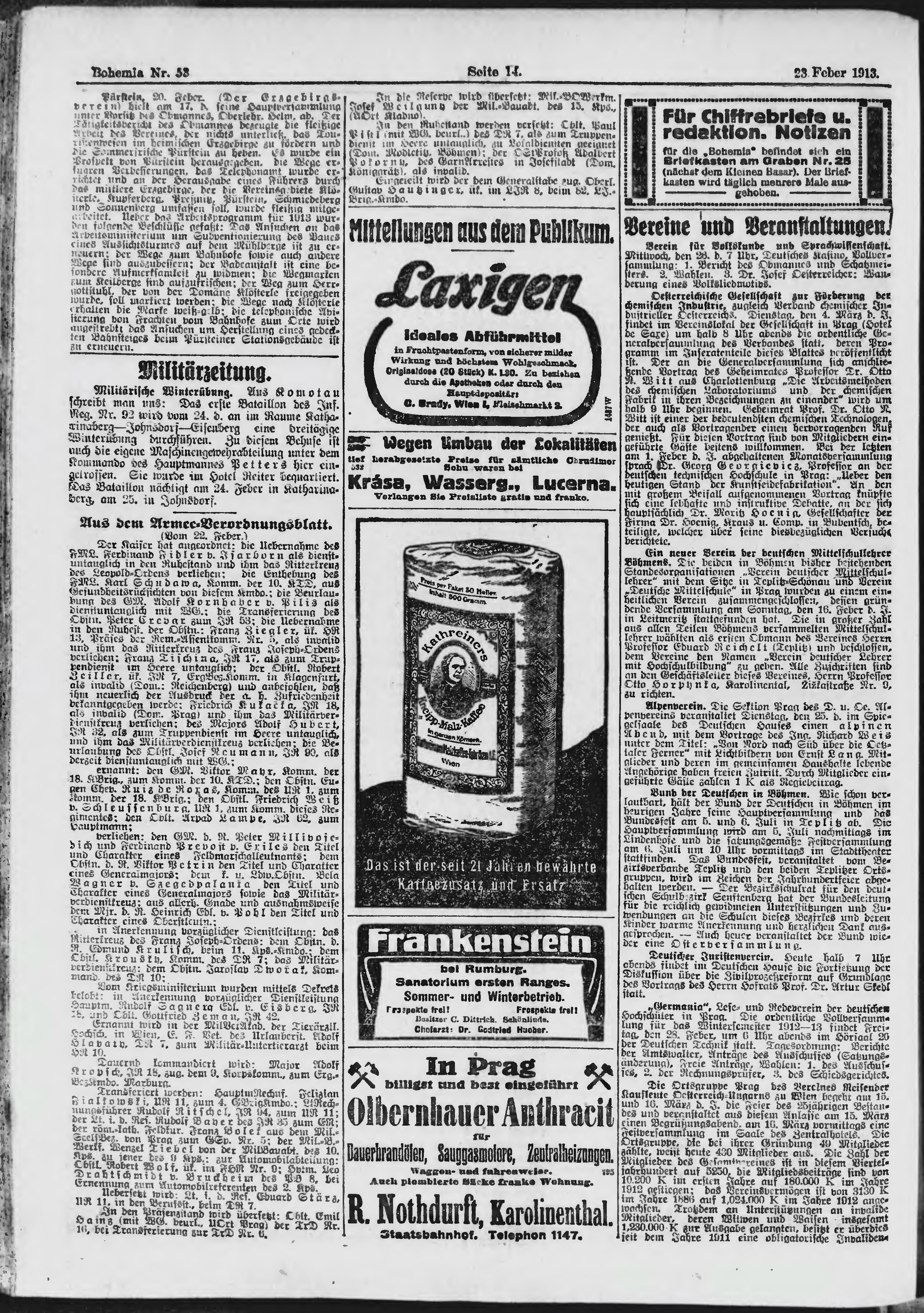 * Datum vydání výtisku: 23.2.1913 Číslo výtisku: 53 Poznámky k výtisku: ranní vydání;