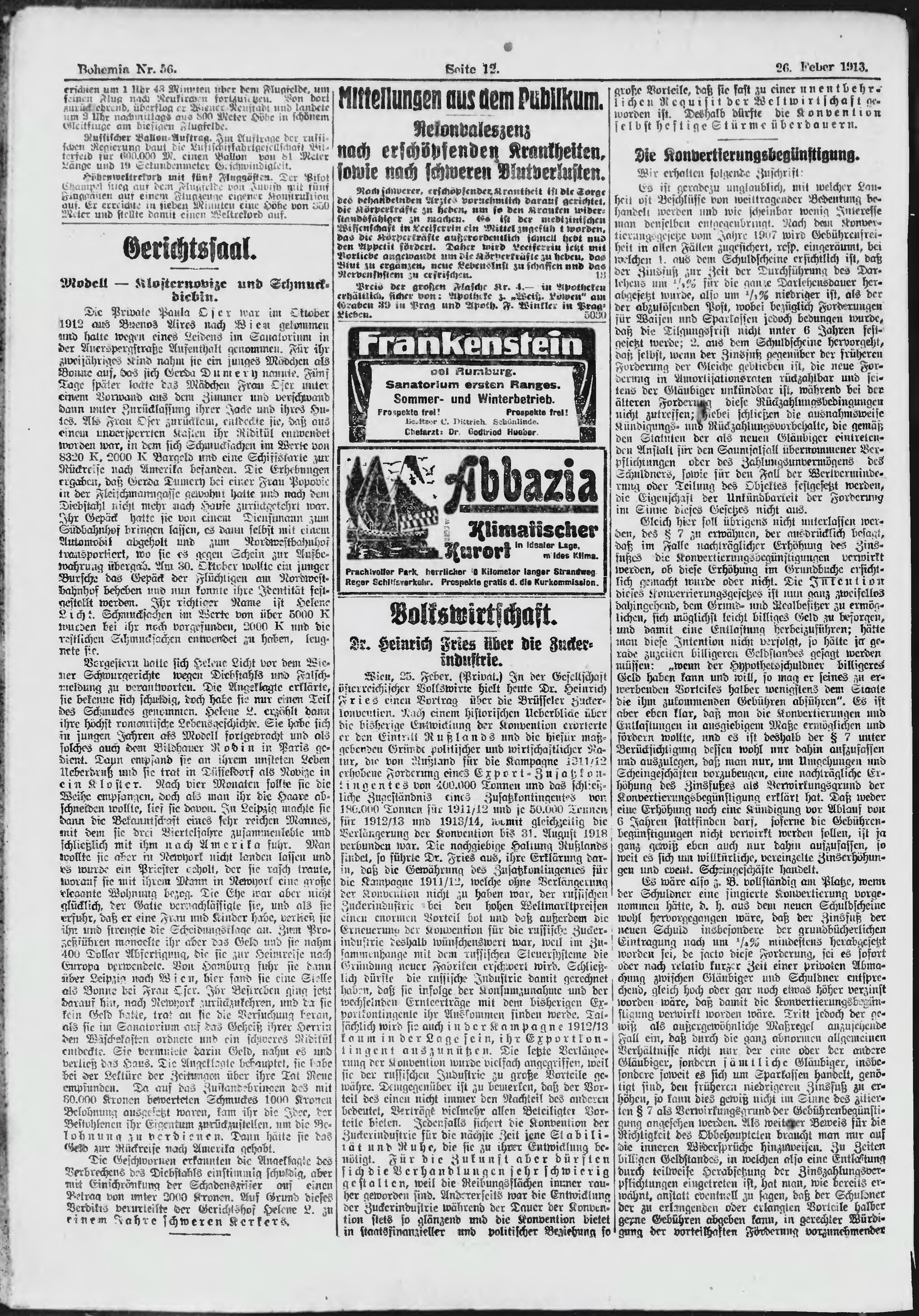 * Datum vydání výtisku: 26.2.1913 Číslo výtisku: 56 Poznámky k výtisku: ranní vydání;