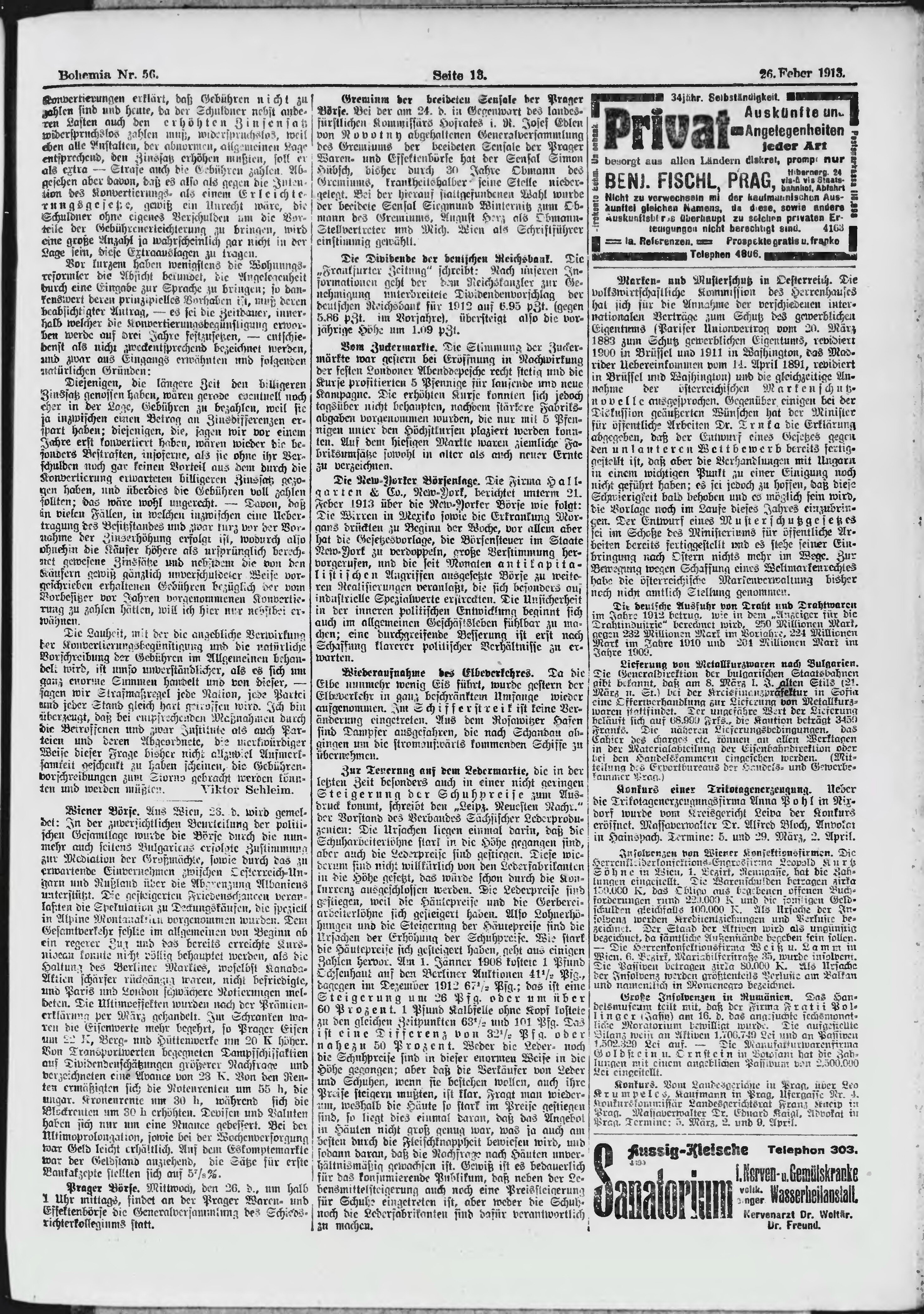 * Datum vydání výtisku: 26.2.1913 Číslo výtisku: 56 Poznámky k výtisku: ranní vydání;