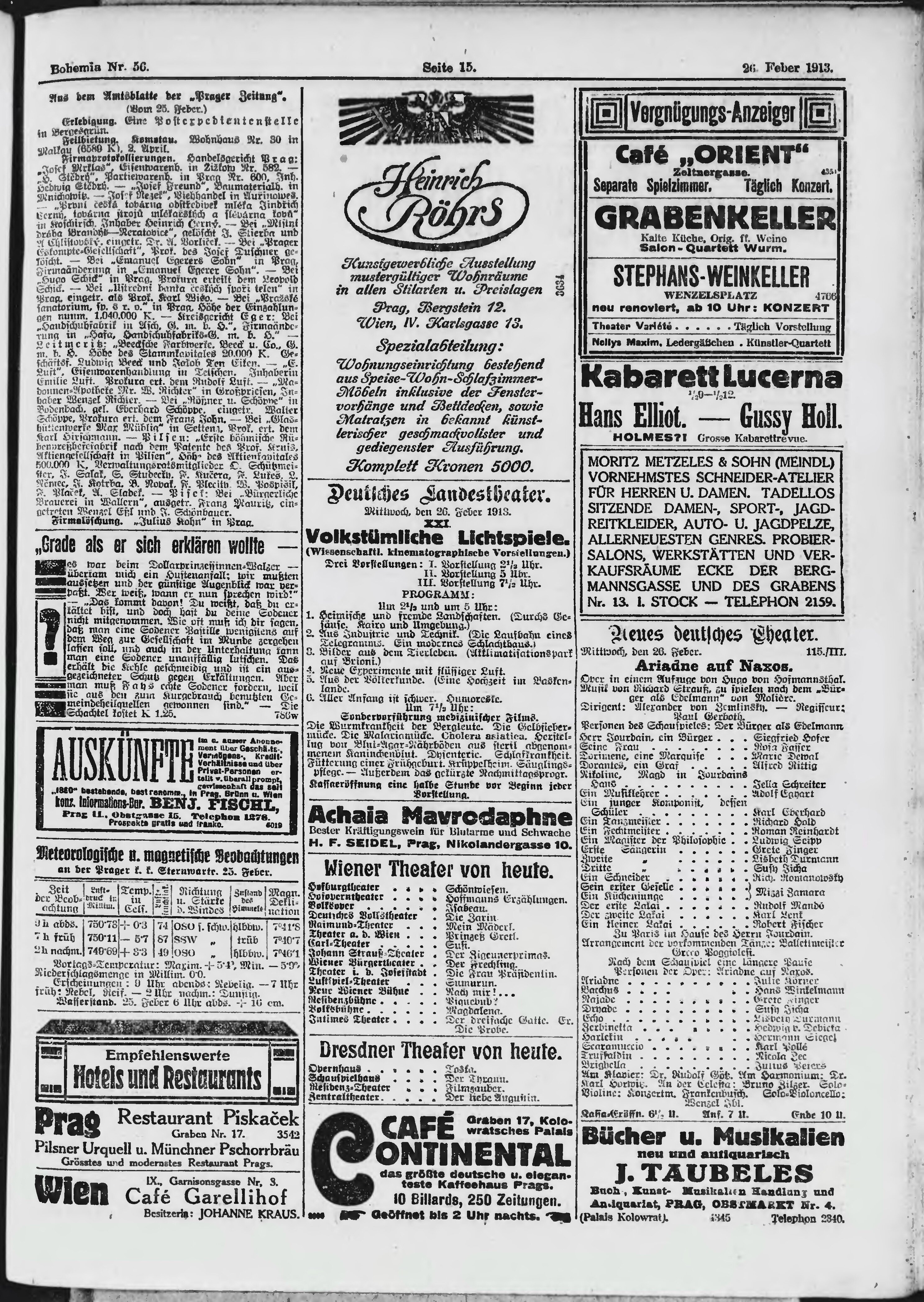 * Datum vydání výtisku: 26.2.1913 Číslo výtisku: 56 Poznámky k výtisku: ranní vydání;