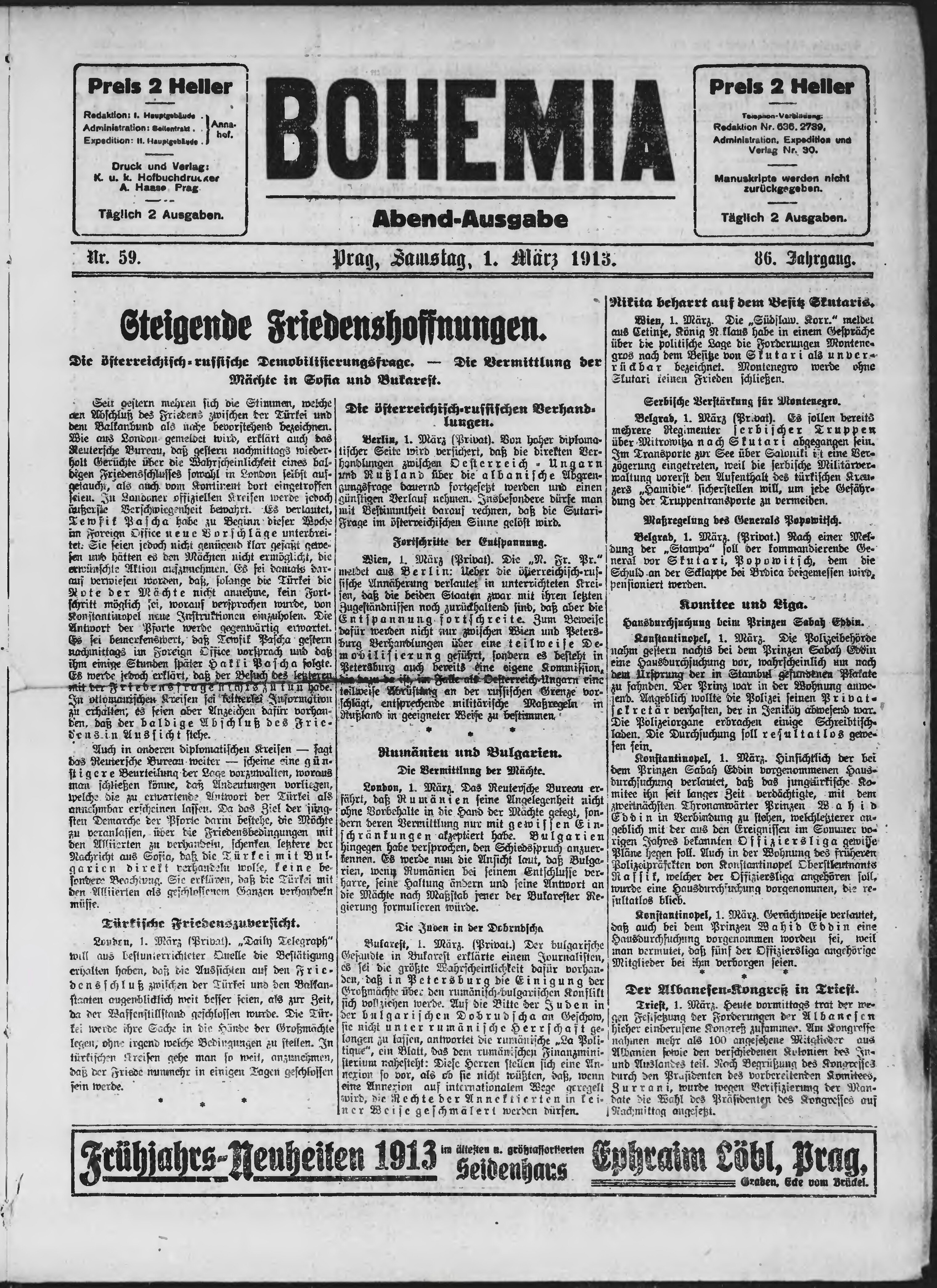 * Datum vydání výtisku: 1.3.1913 Číslo výtisku: 59 Poznámky k výtisku: večerní vydání