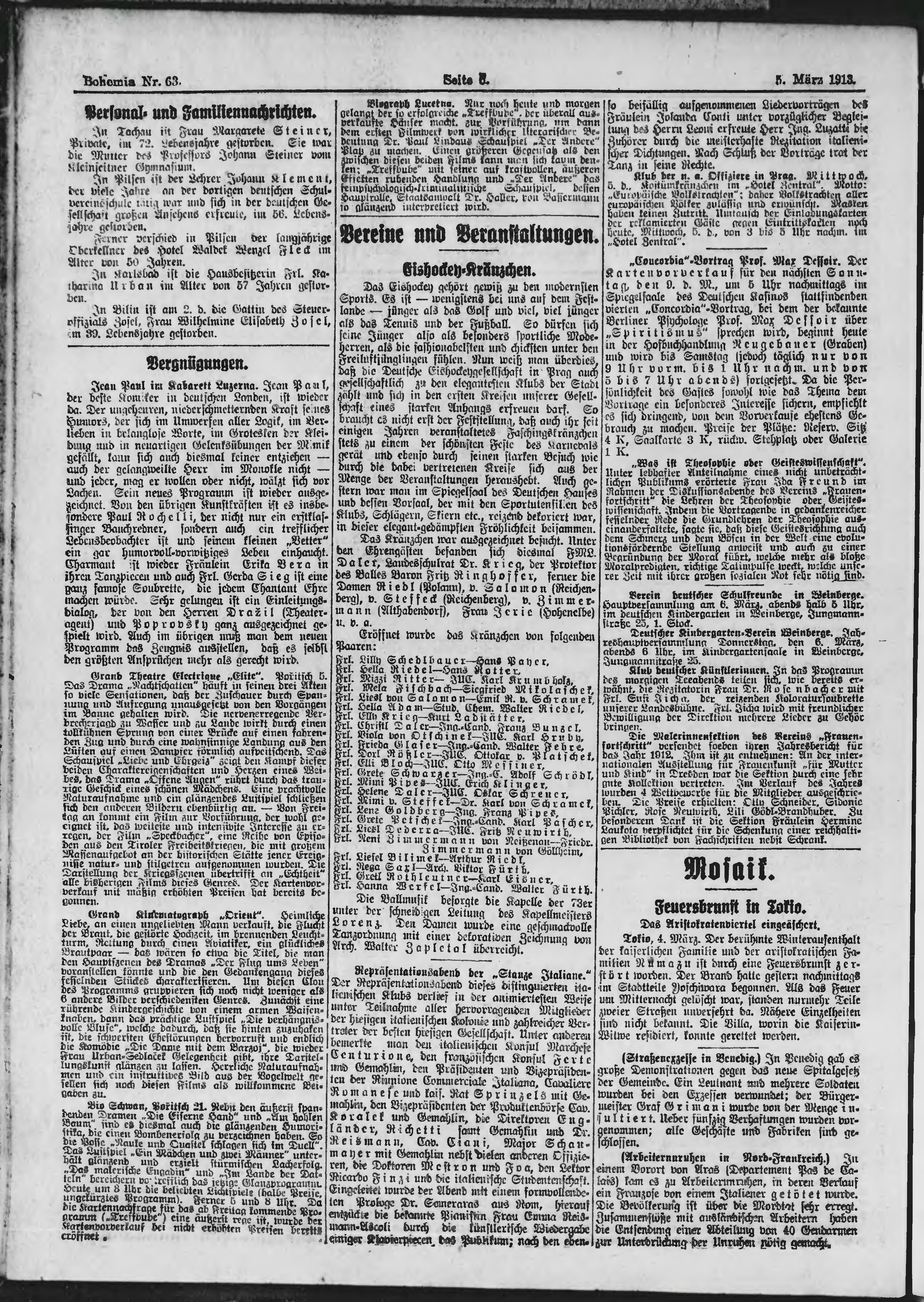 * Datum vydání výtisku: 5.3.1913 Číslo výtisku: 63 Poznámky k výtisku: ranní vydání;