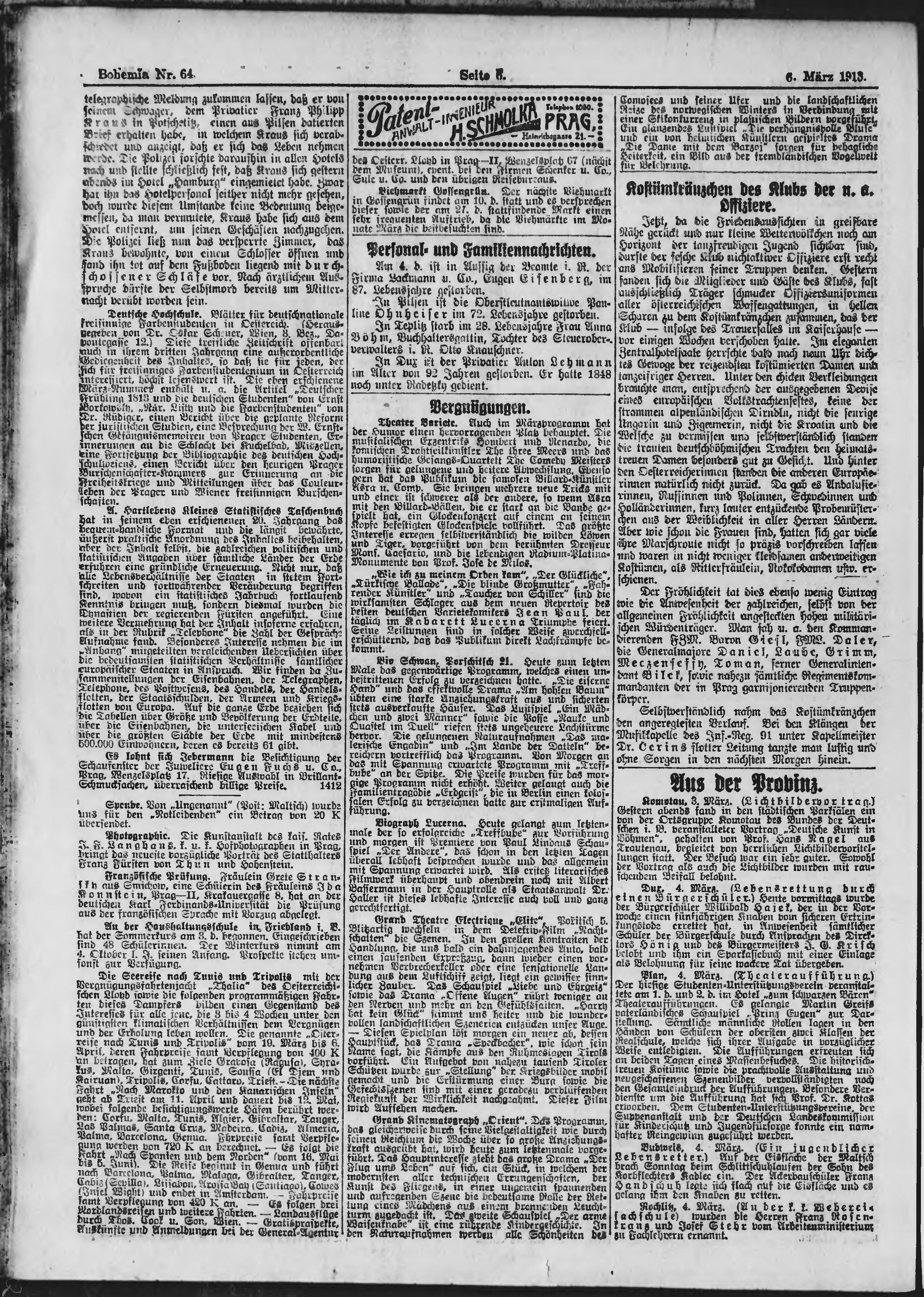 * Datum vydání výtisku: 6.3.1913 Číslo výtisku: 64 Poznámky k výtisku: s. 13, 14 není k dispozici