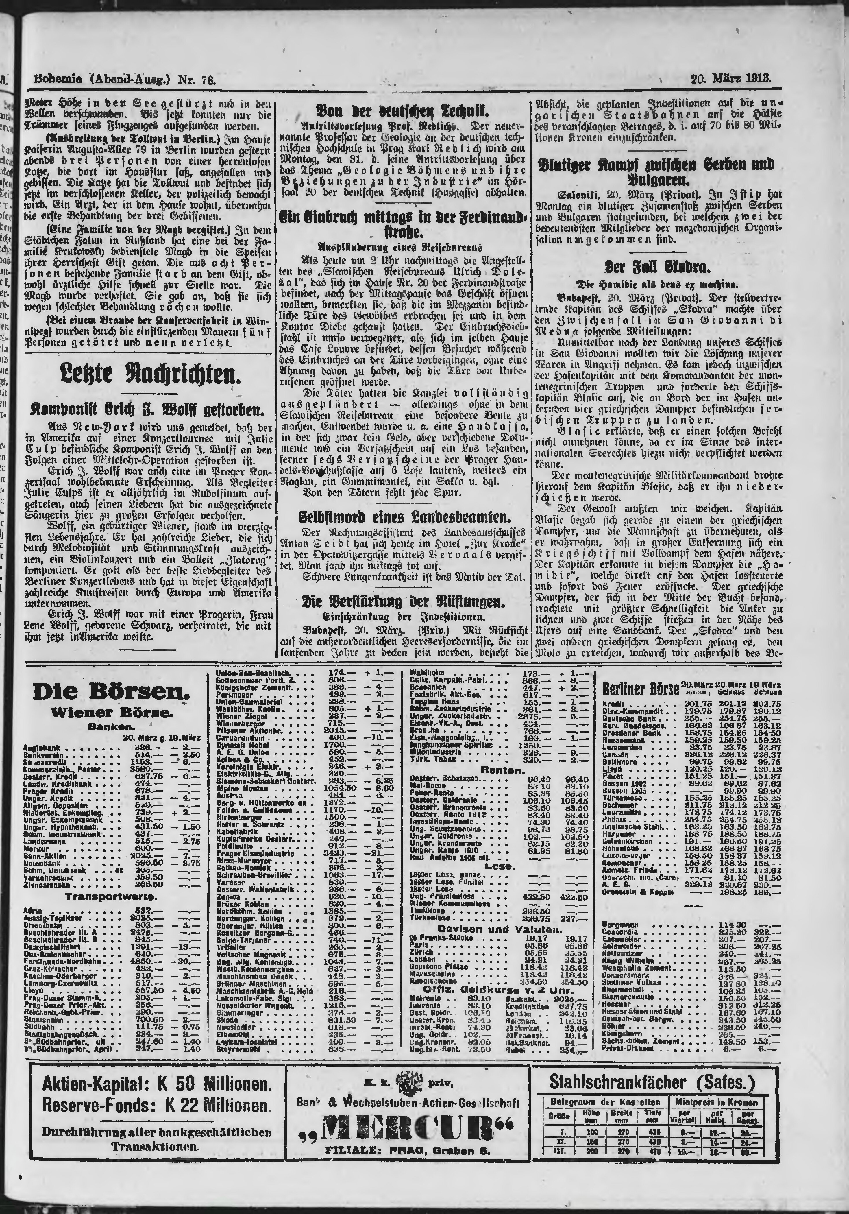 * Datum vydání výtisku: 20.3.1913 Číslo výtisku: 78 Poznámky k výtisku: večerní vydání
