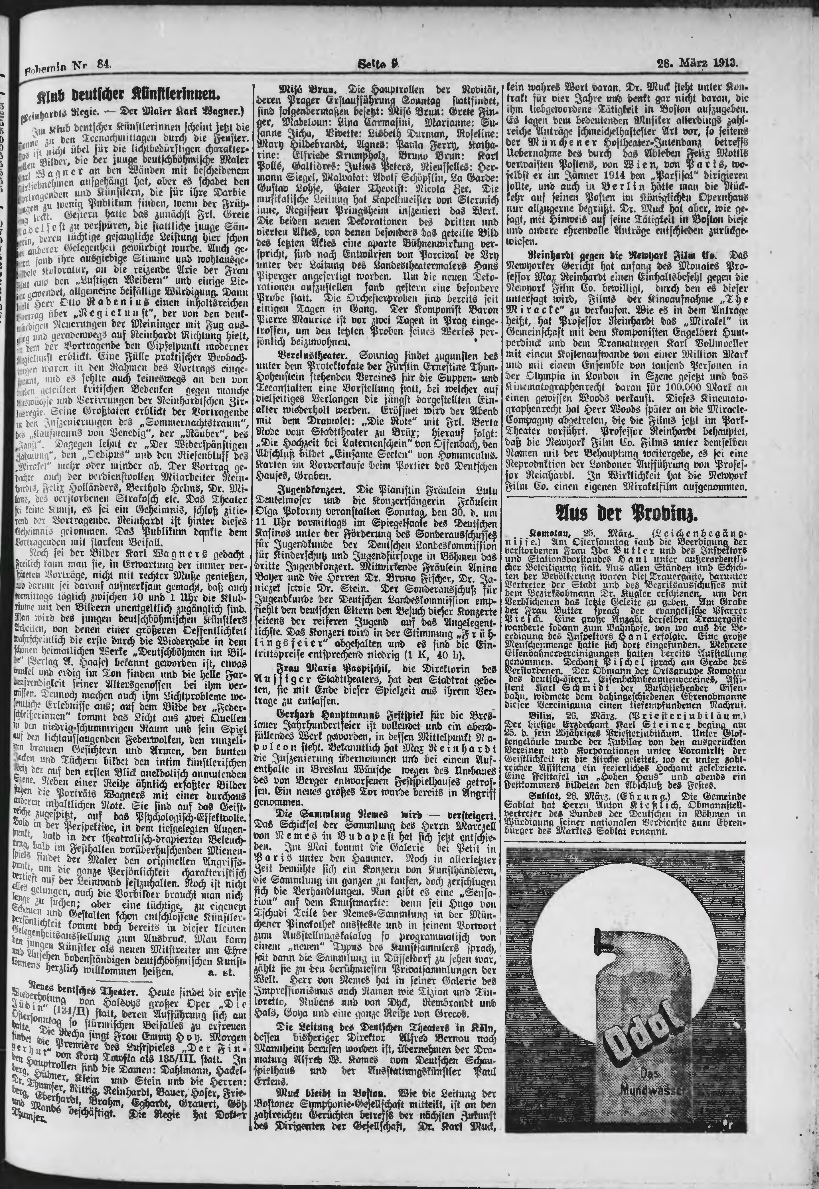 * Datum vydání výtisku: 28.3.1913 Číslo výtisku: 84 Poznámky k výtisku: ranní vydání;