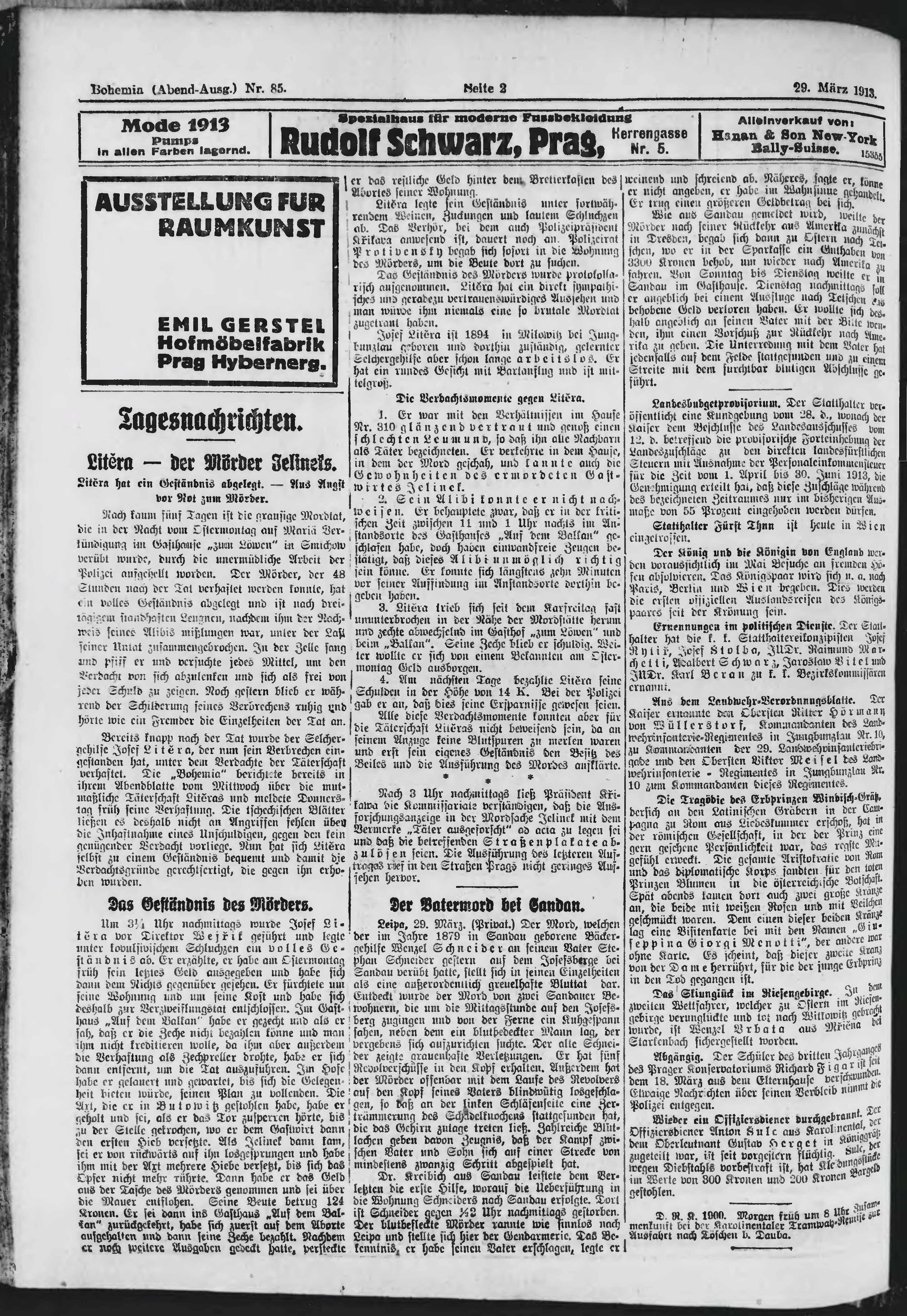 * Datum vydání výtisku: 29.3.1913 Číslo výtisku: 85 Poznámky k výtisku: večerní vydání