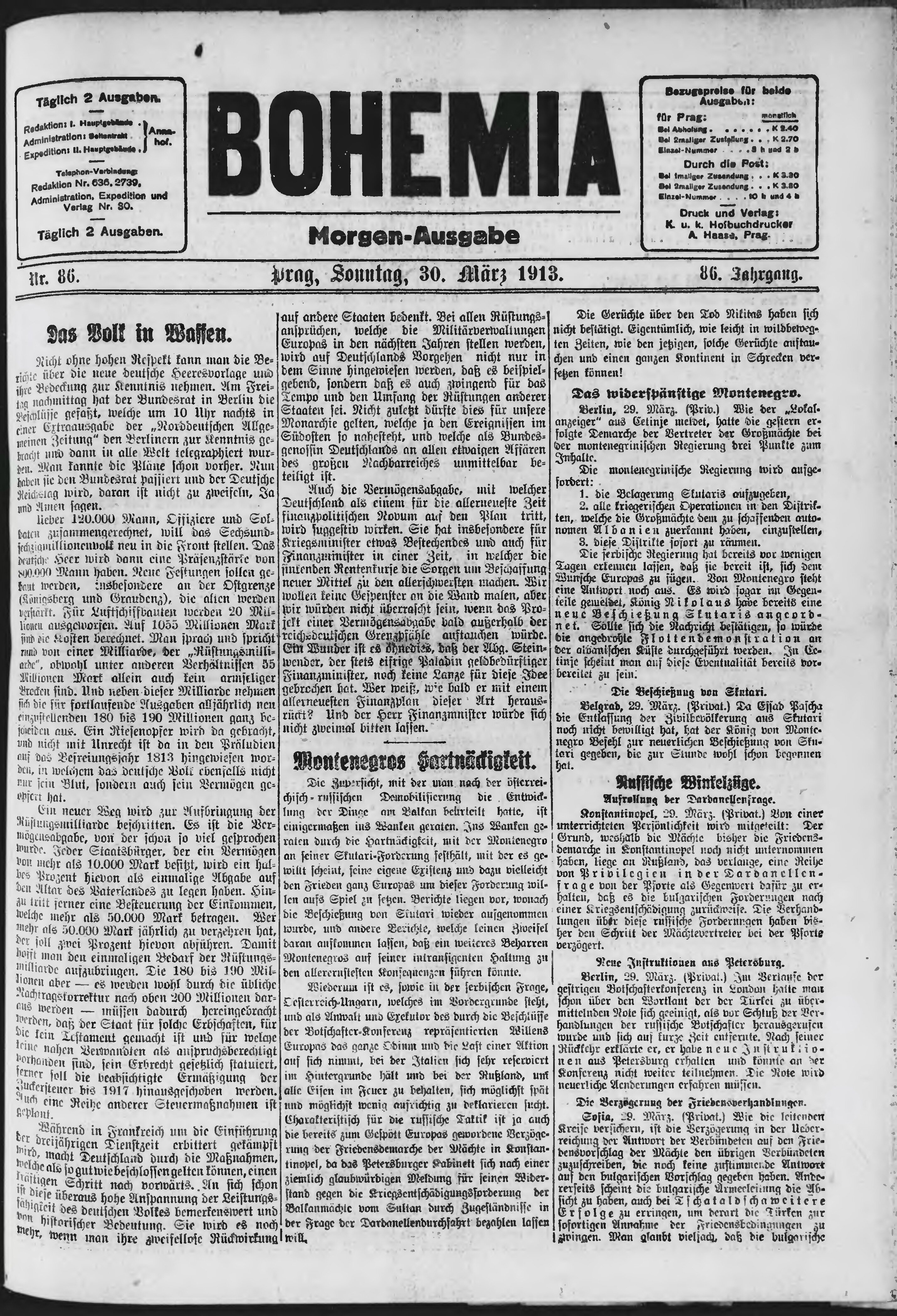 * Datum vydání výtisku: 30.3.1913 Číslo výtisku: 86 Poznámky k výtisku: ranní vydání;