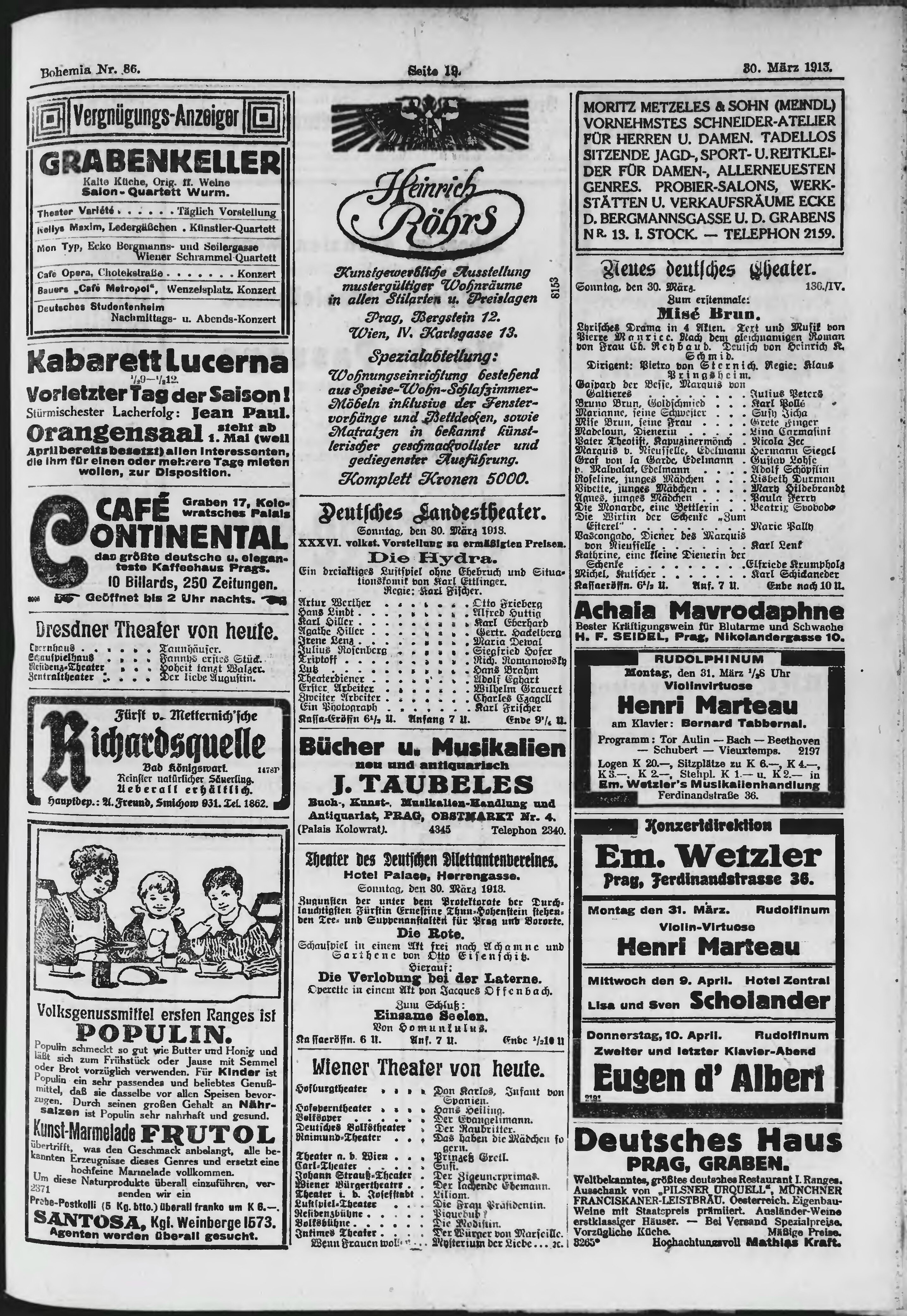 * Datum vydání výtisku: 30.3.1913 Číslo výtisku: 86 Poznámky k výtisku: ranní vydání;