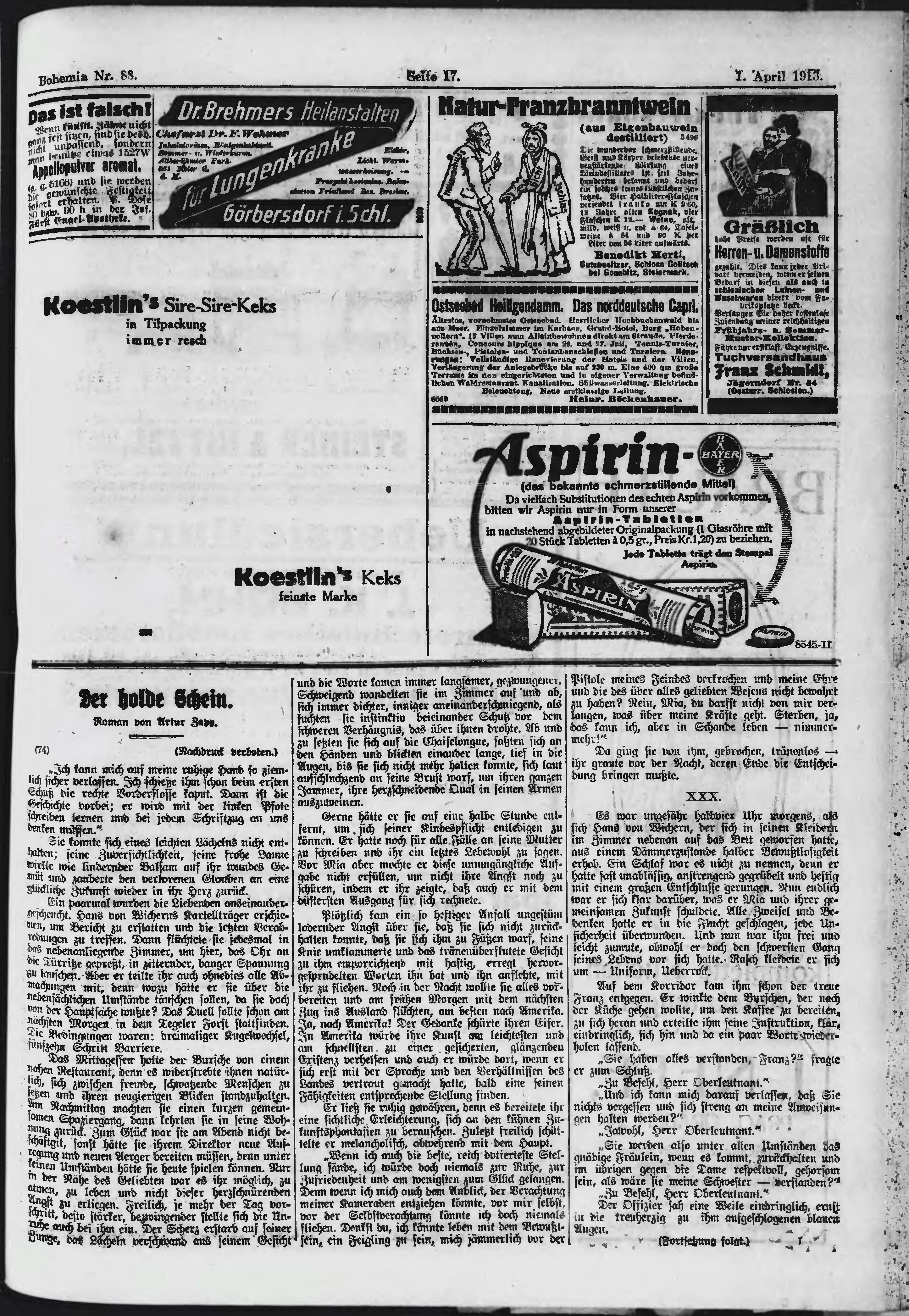 * Datum vydání výtisku: 1.4.1913 Číslo výtisku: 88 Poznámky k výtisku: ranní vydání;