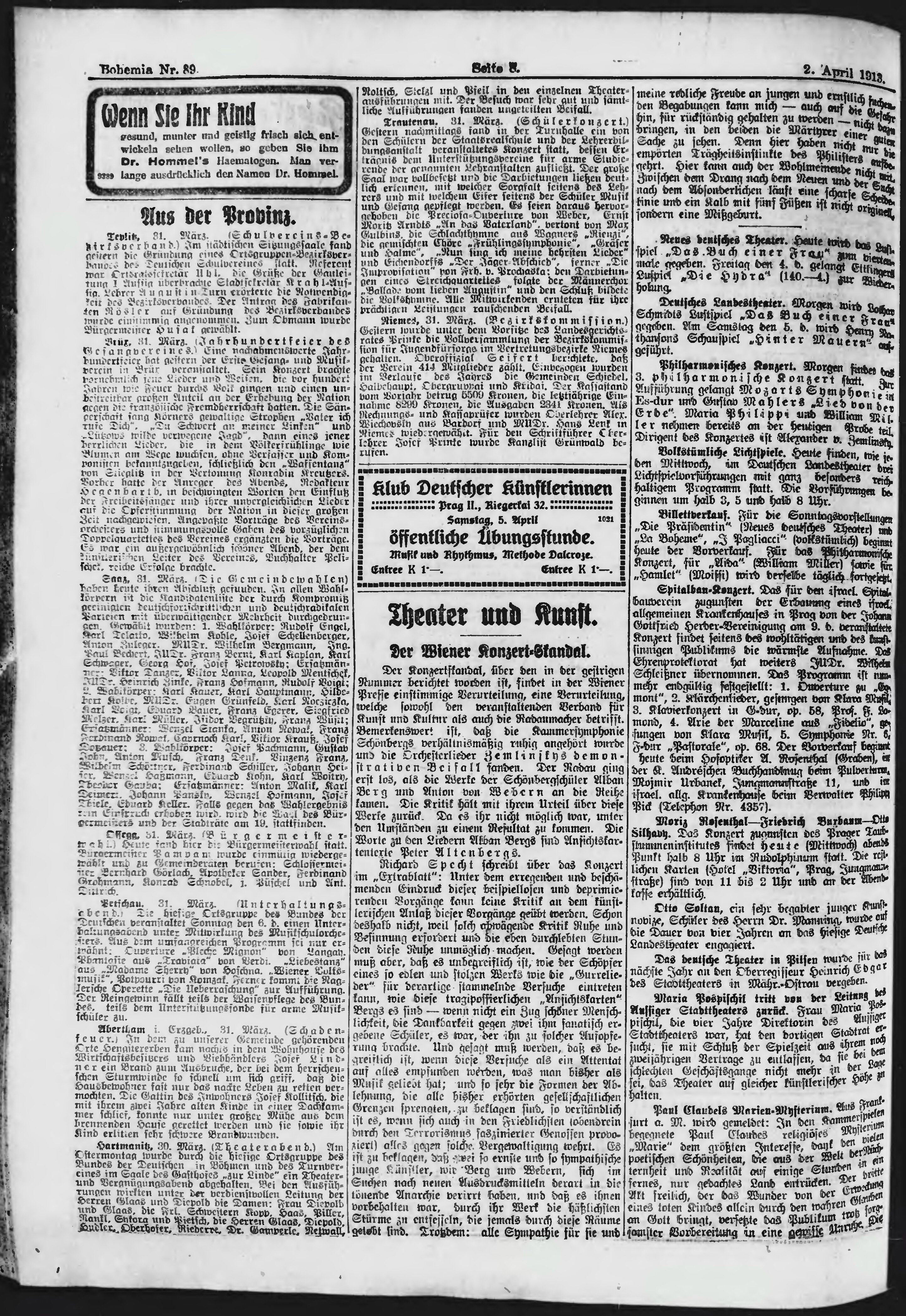 * Datum vydání výtisku: 2.4.1913 Číslo výtisku: 89 Poznámky k výtisku: ranní vydání;
