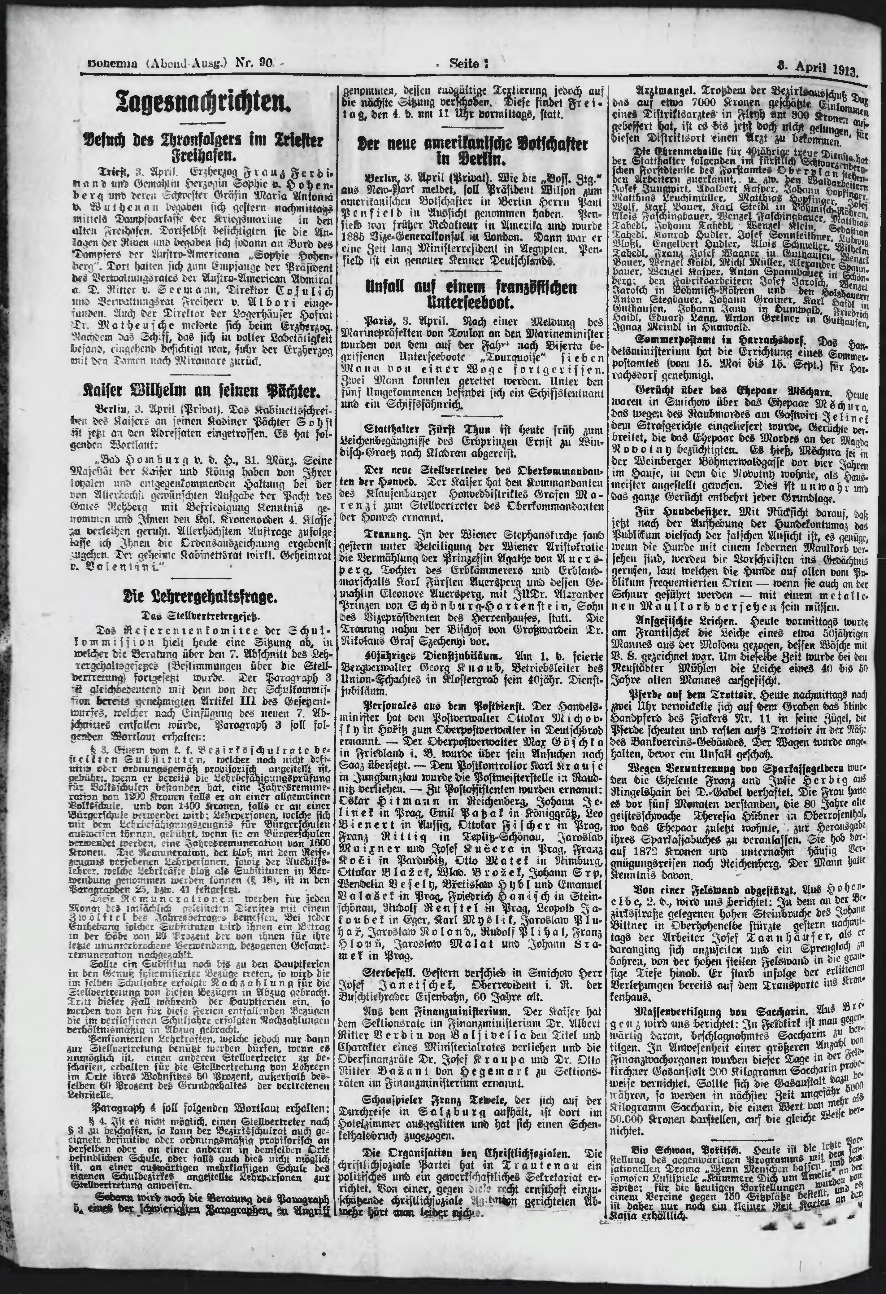* Datum vydání výtisku: 3.4.1913 Číslo výtisku: 90 Poznámky k výtisku: večerní vydání