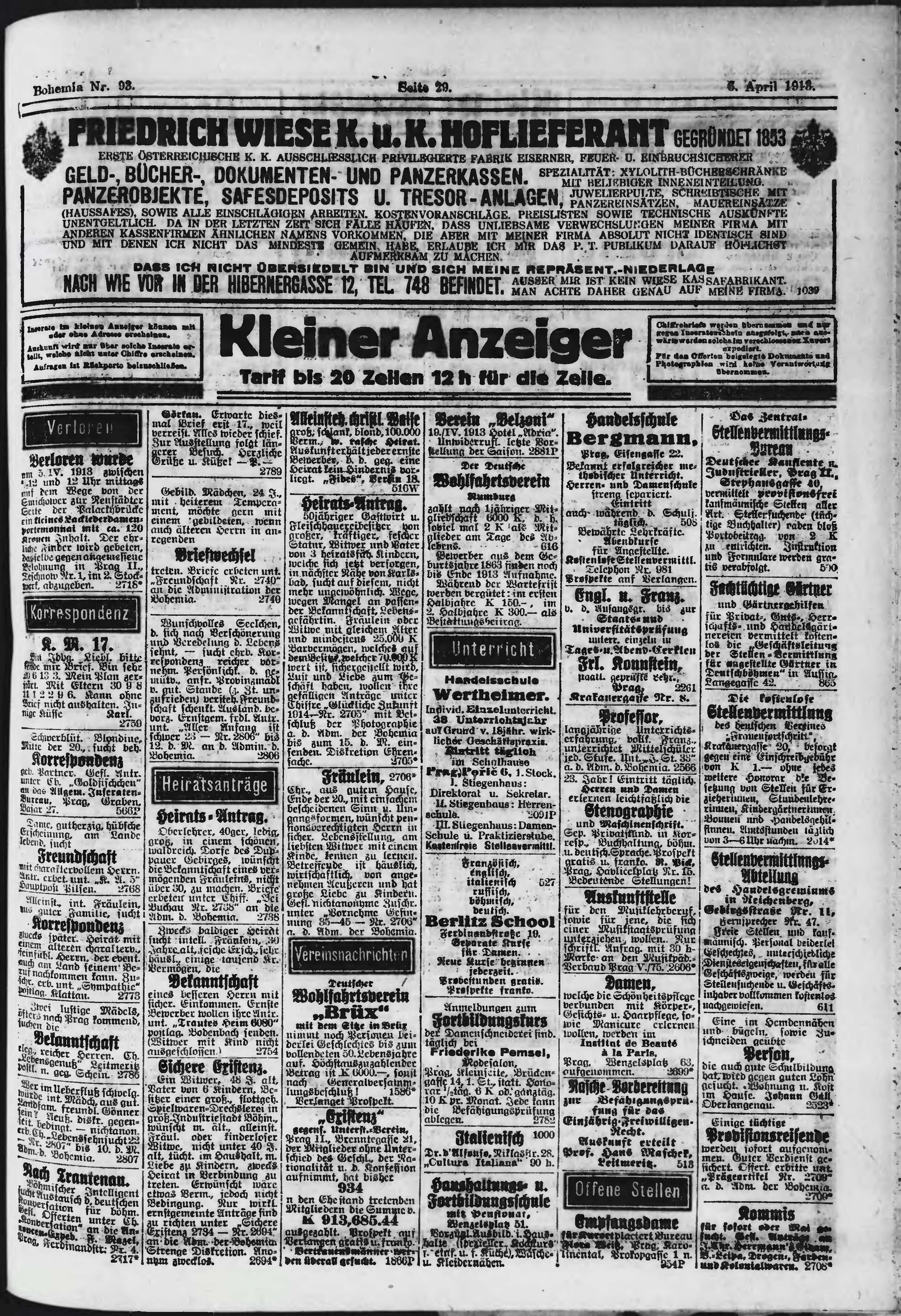 * Datum vydání výtisku: 6.4.1913 Číslo výtisku: 93 Poznámky k výtisku: ranní vydání;