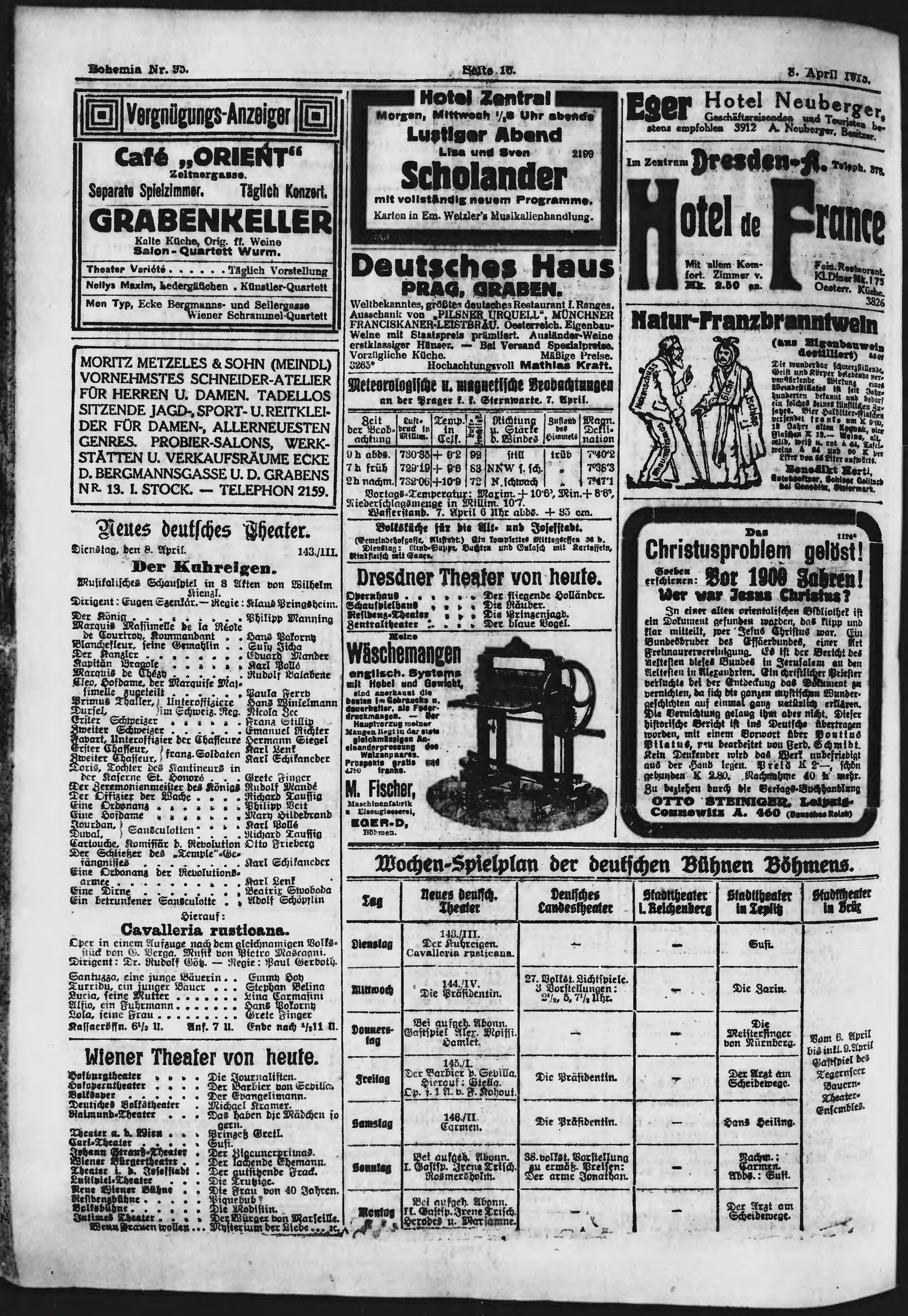 * Datum vydání výtisku: 8.4.1913 Číslo výtisku: 95 Poznámky k výtisku: ranní vydání;