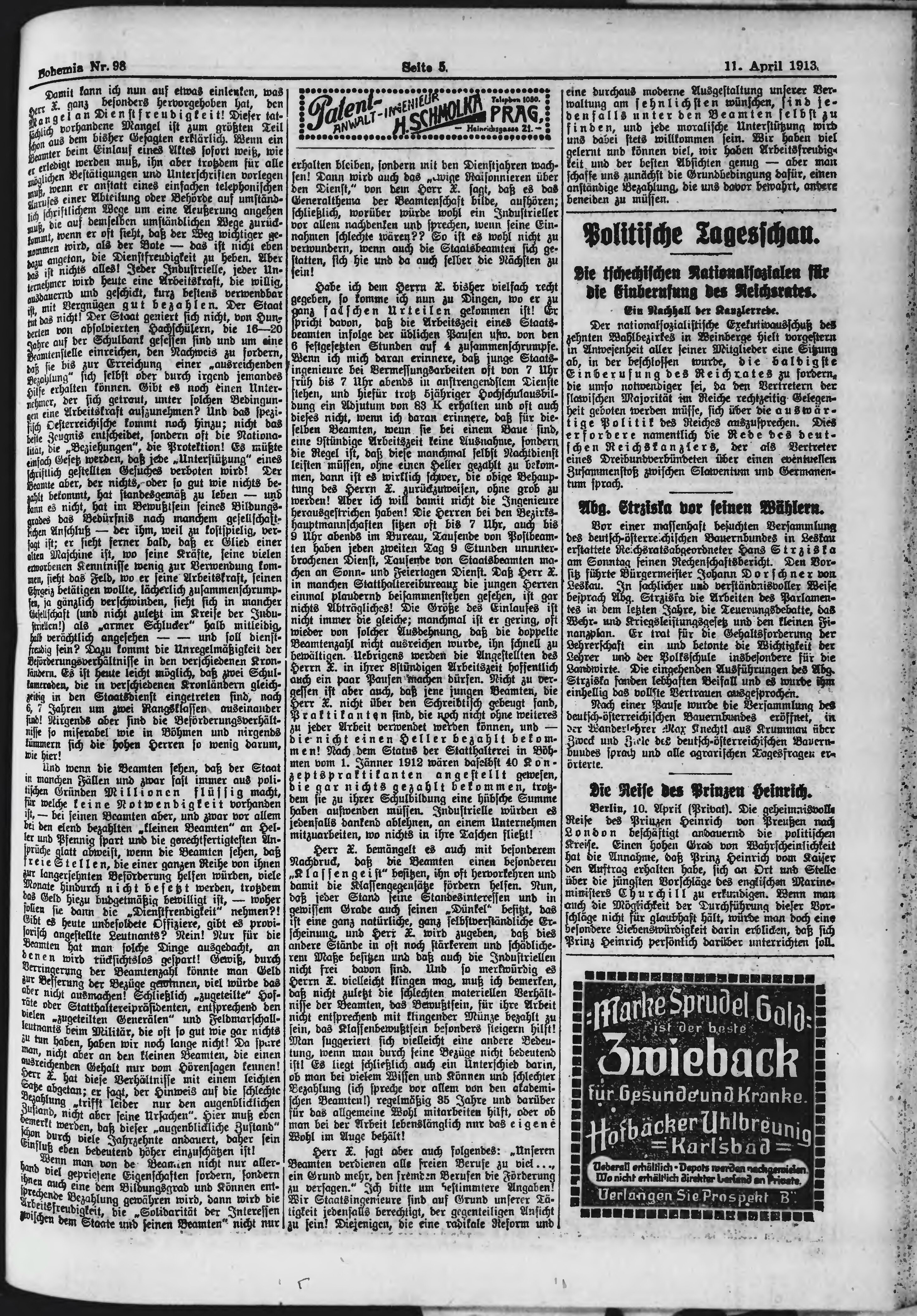 * Datum vydání výtisku: 11.4.1913 Číslo výtisku: 98 Poznámky k výtisku: ranní vydání;