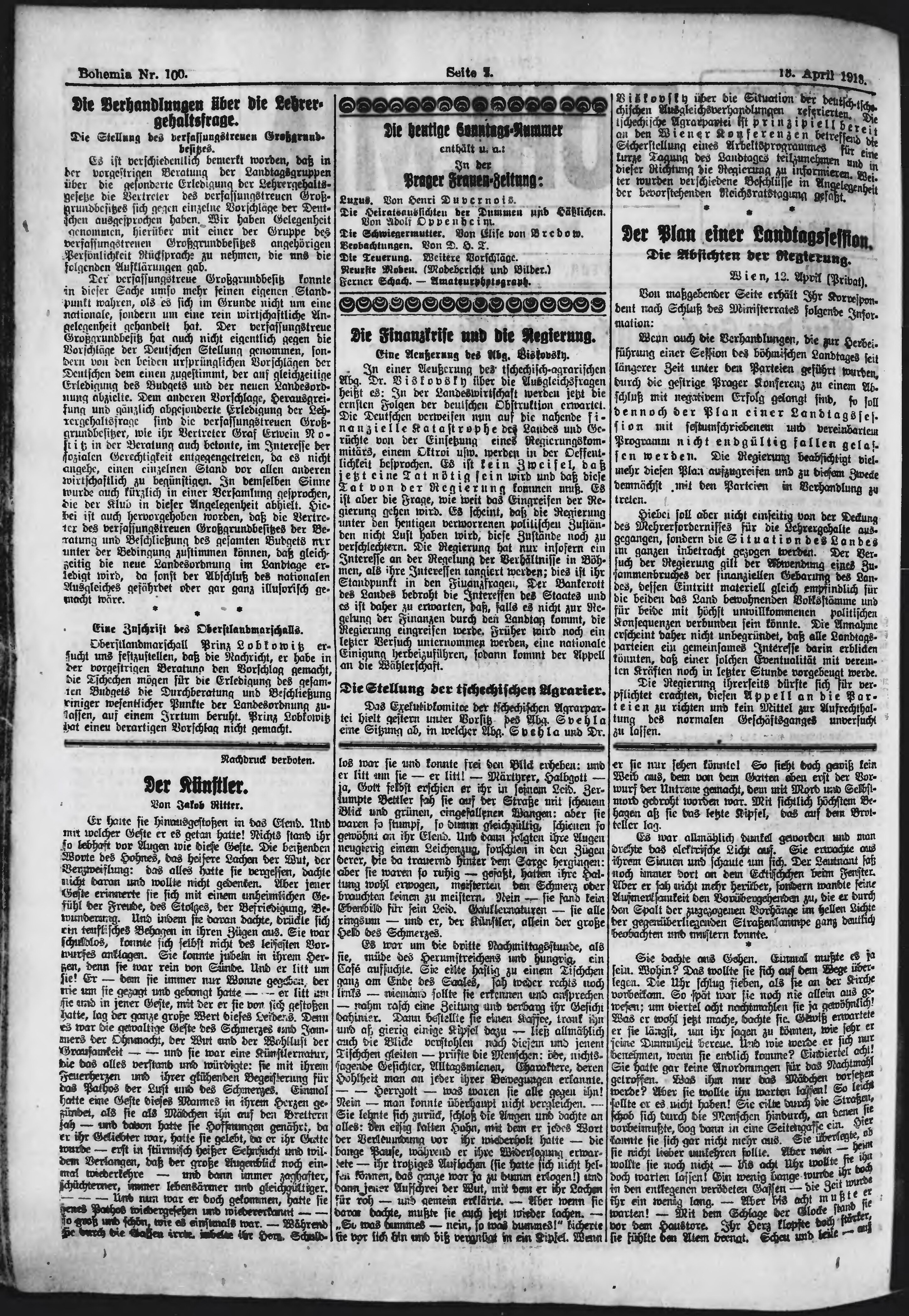 * Datum vydání výtisku: 13.4.1913 Číslo výtisku: 100 Poznámky k výtisku: ranní vydání;