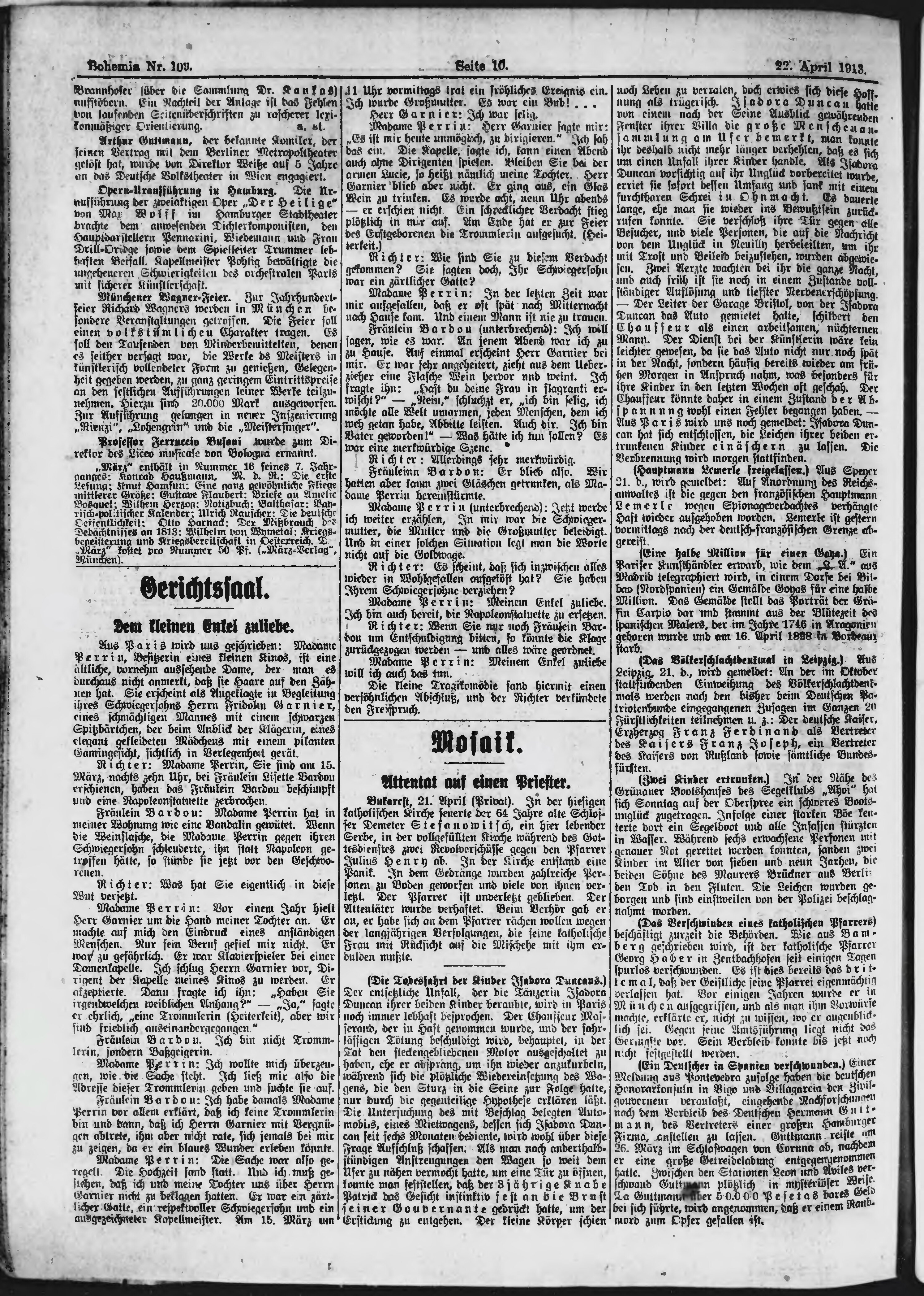 * Datum vydání výtisku: 22.4.1913 Číslo výtisku: 109 Poznámky k výtisku: ranní vydání;