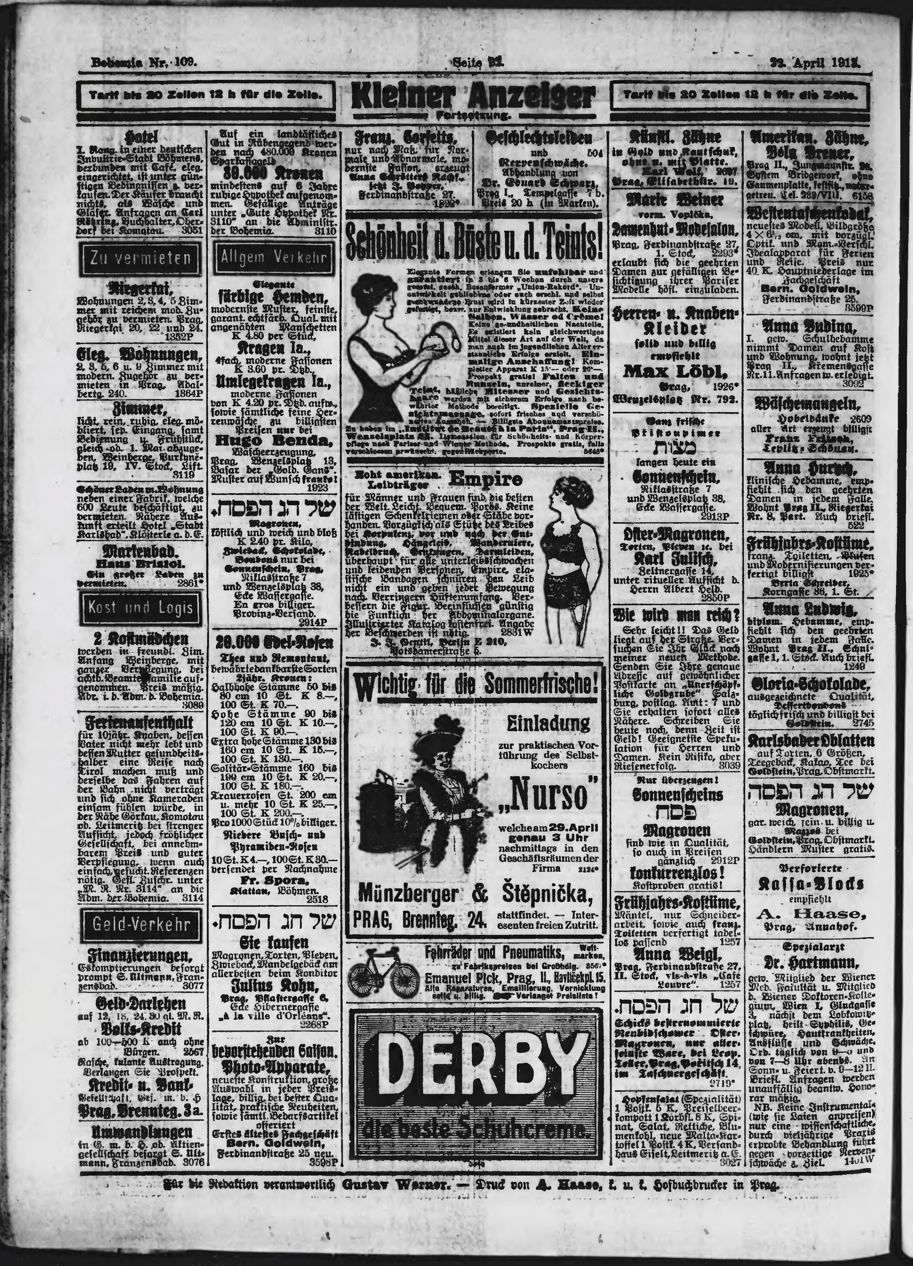 * Datum vydání výtisku: 22.4.1913 Číslo výtisku: 109 Poznámky k výtisku: ranní vydání;