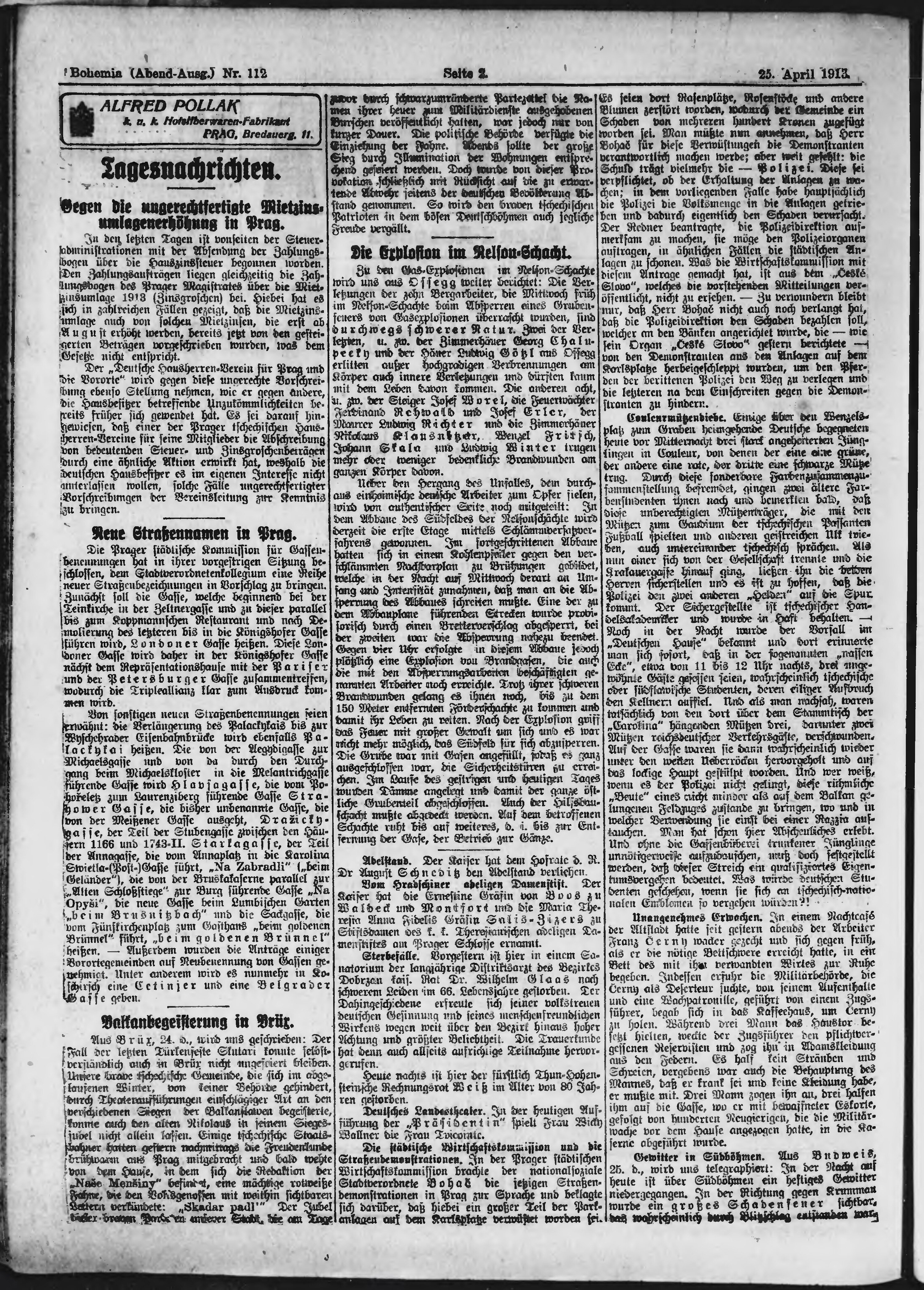* Datum vydání výtisku: 25.4.1913 Číslo výtisku: 112 Poznámky k výtisku: večerní vydání