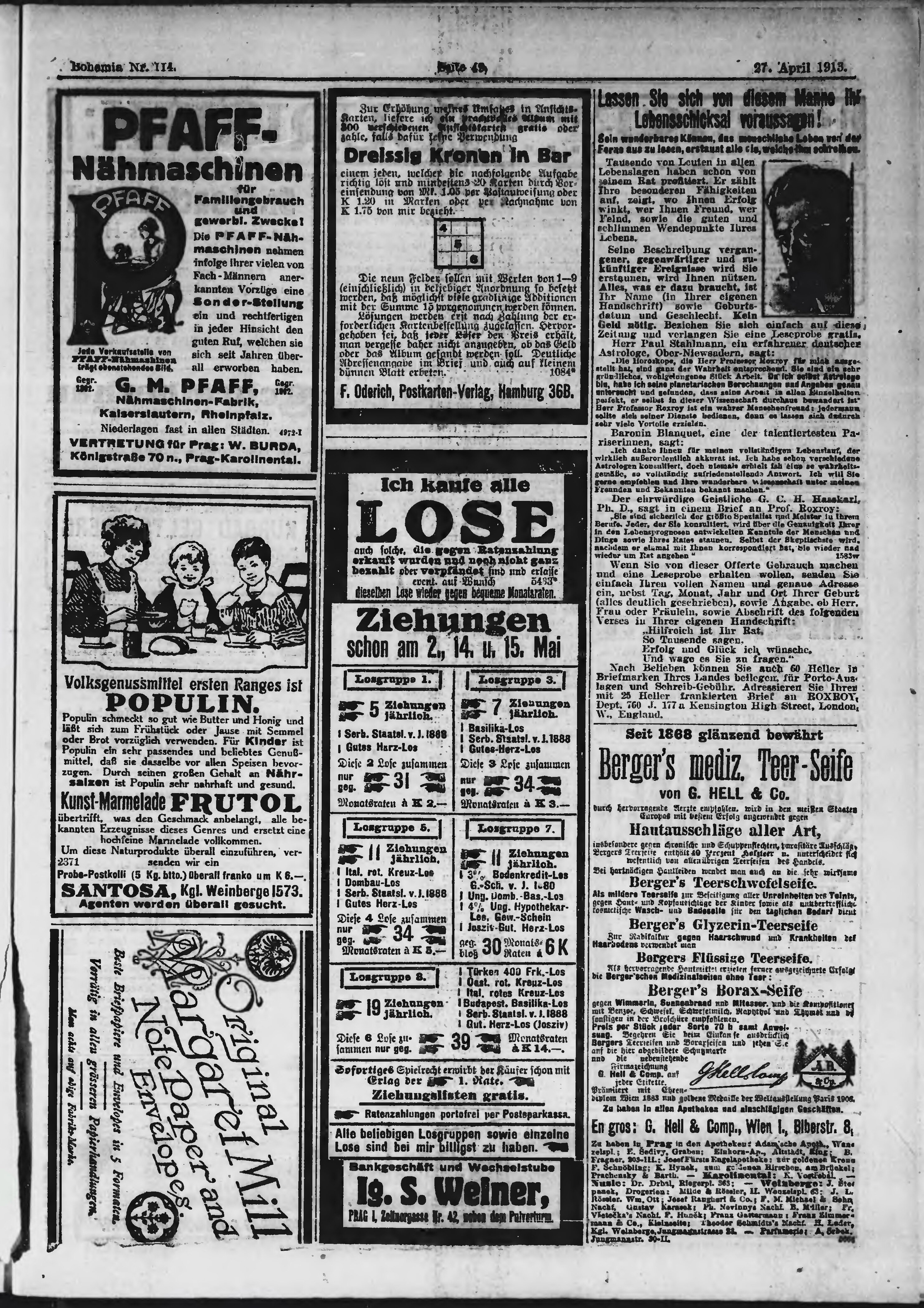 * Datum vydání výtisku: 27.4.1913 Číslo výtisku: 114 Poznámky k výtisku: ranní vydání;