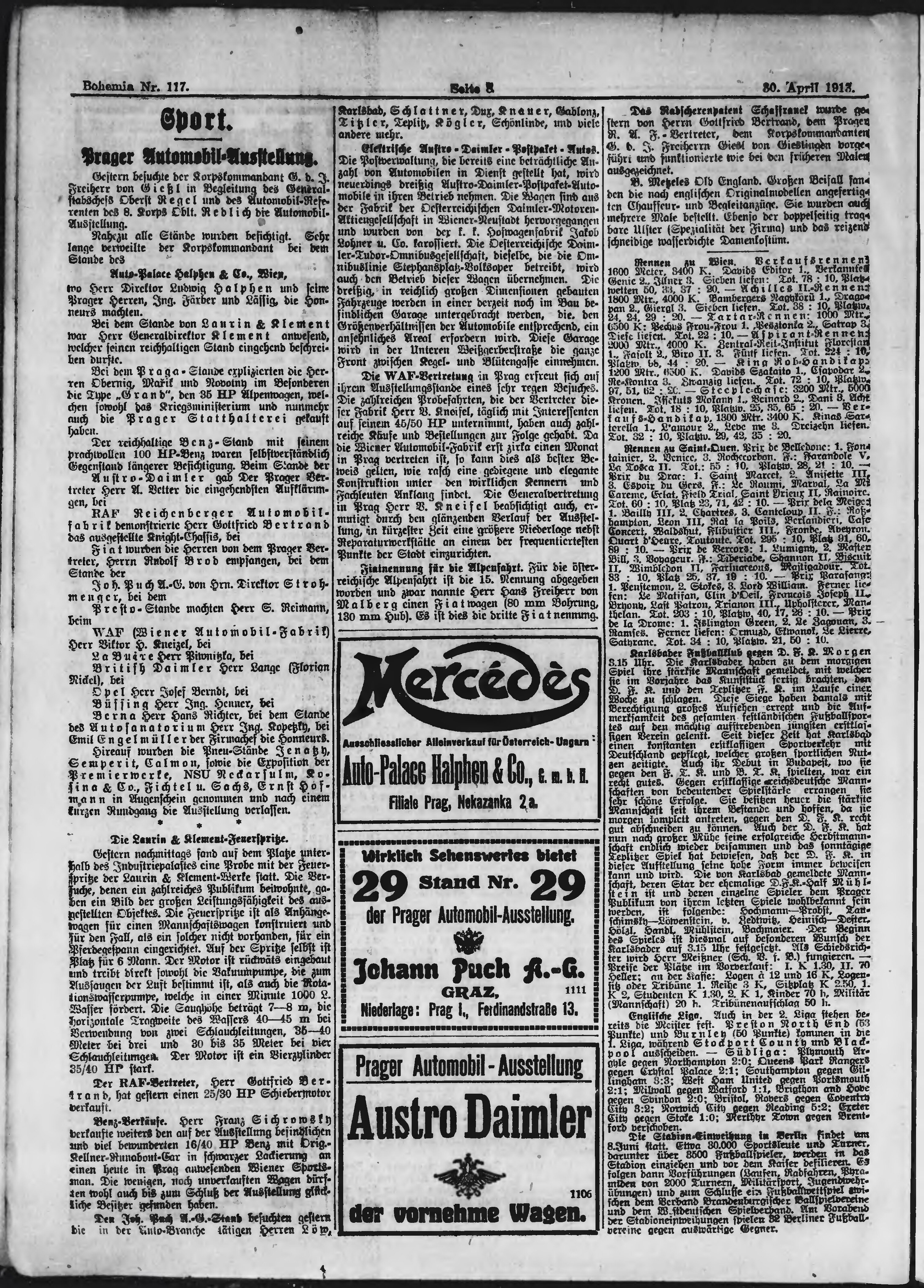 * Datum vydání výtisku: 30.4.1913 Číslo výtisku: 117 Poznámky k výtisku: ranní vydání;