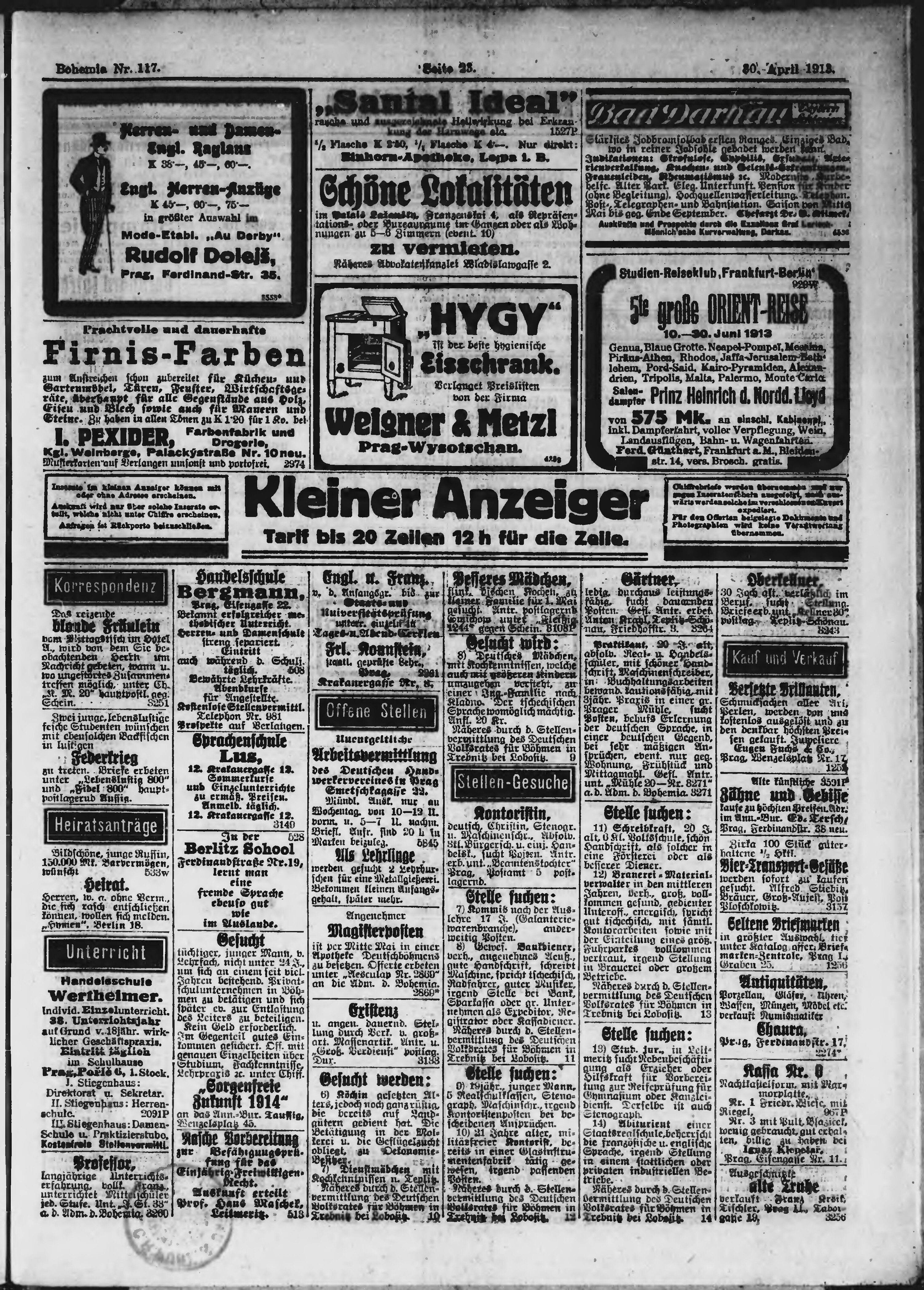 * Datum vydání výtisku: 30.4.1913 Číslo výtisku: 117 Poznámky k výtisku: ranní vydání;