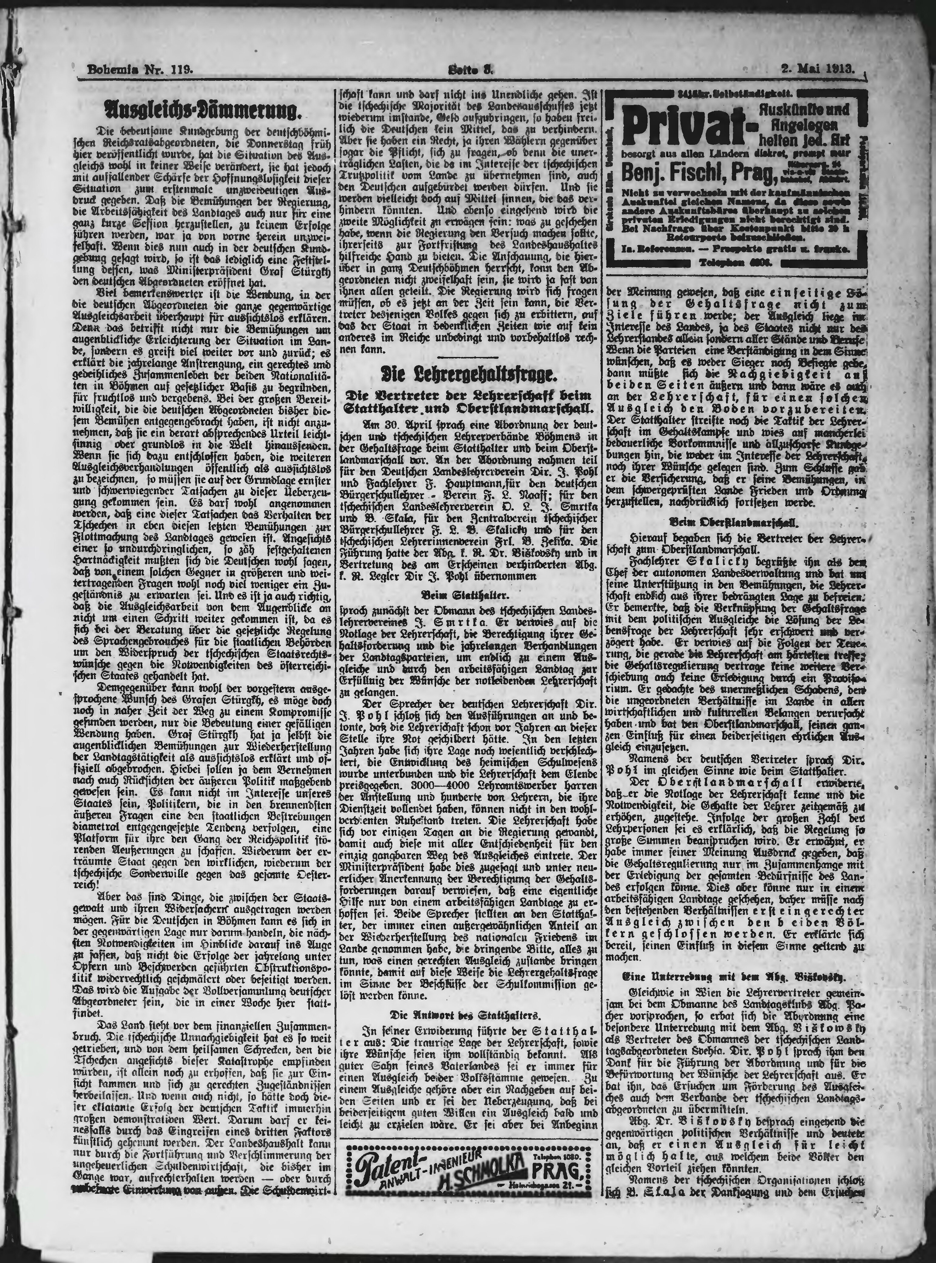 * Datum vydání výtisku: 2.5.1913 Číslo výtisku: 119 Poznámky k výtisku: polední vydání;