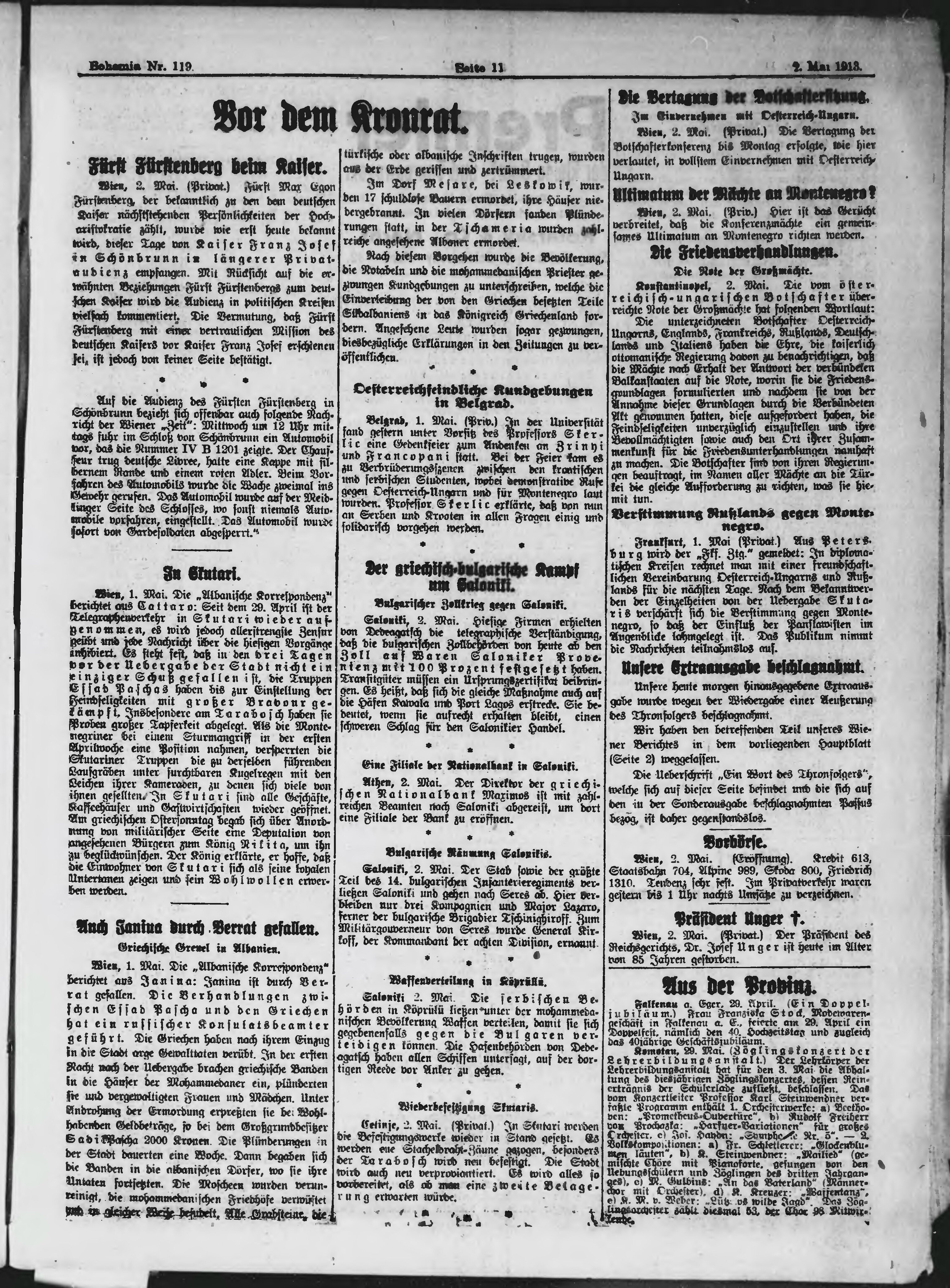 * Datum vydání výtisku: 2.5.1913 Číslo výtisku: 119 Poznámky k výtisku: polední vydání;
