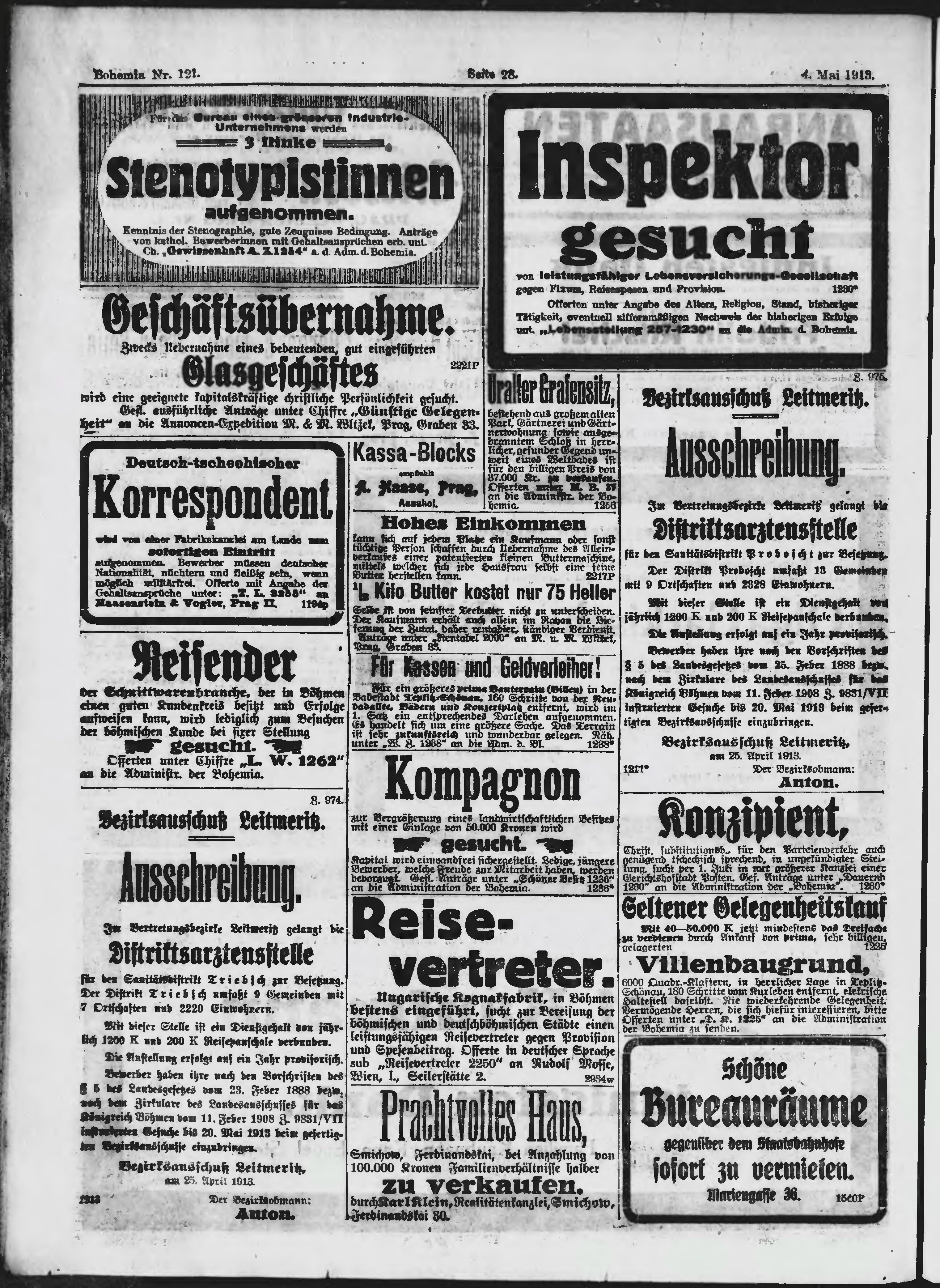 * Datum vydání výtisku: 4.5.1913 Číslo výtisku: 121 Poznámky k výtisku: ranní vydání;