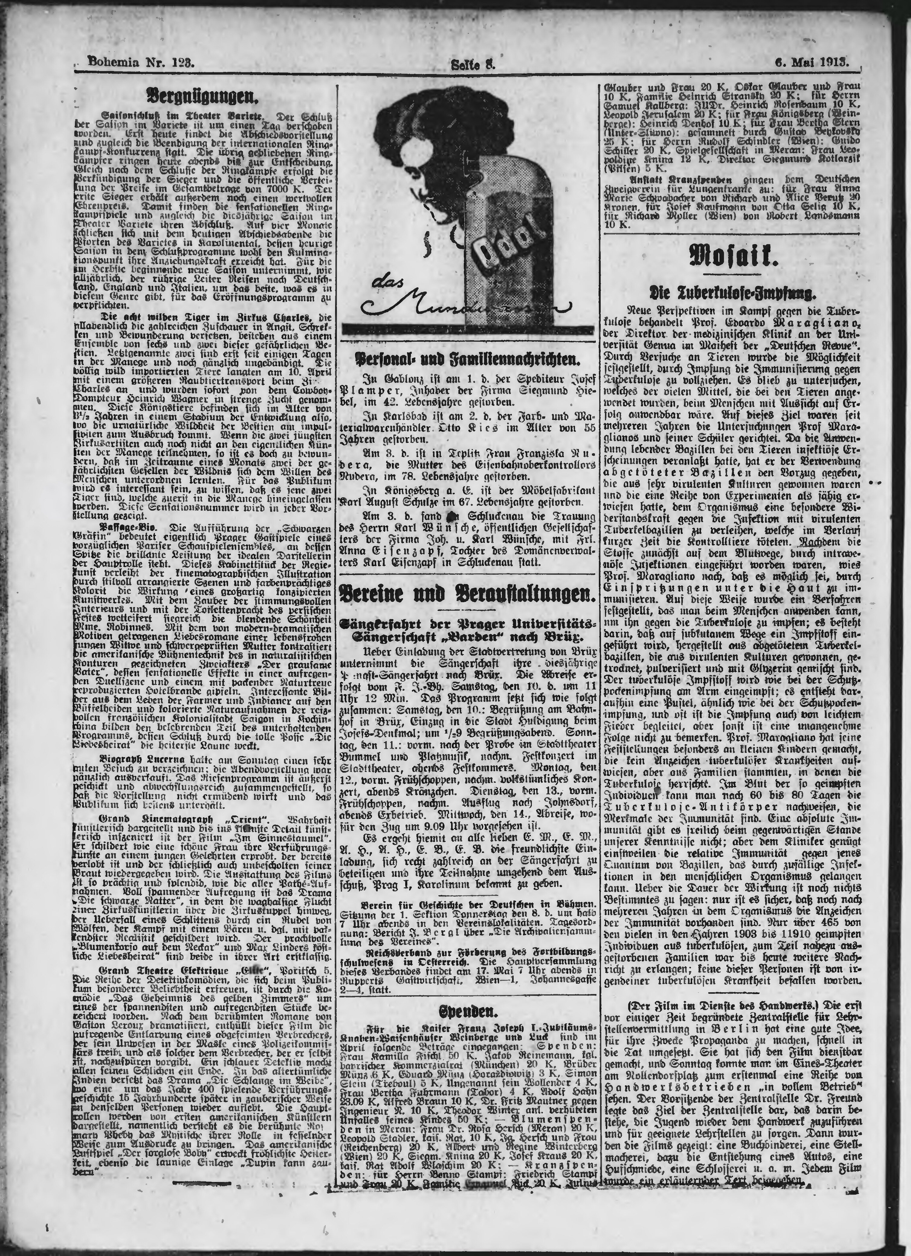 * Datum vydání výtisku: 6.5.1913 Číslo výtisku: 123 Poznámky k výtisku: ranní vydání;
