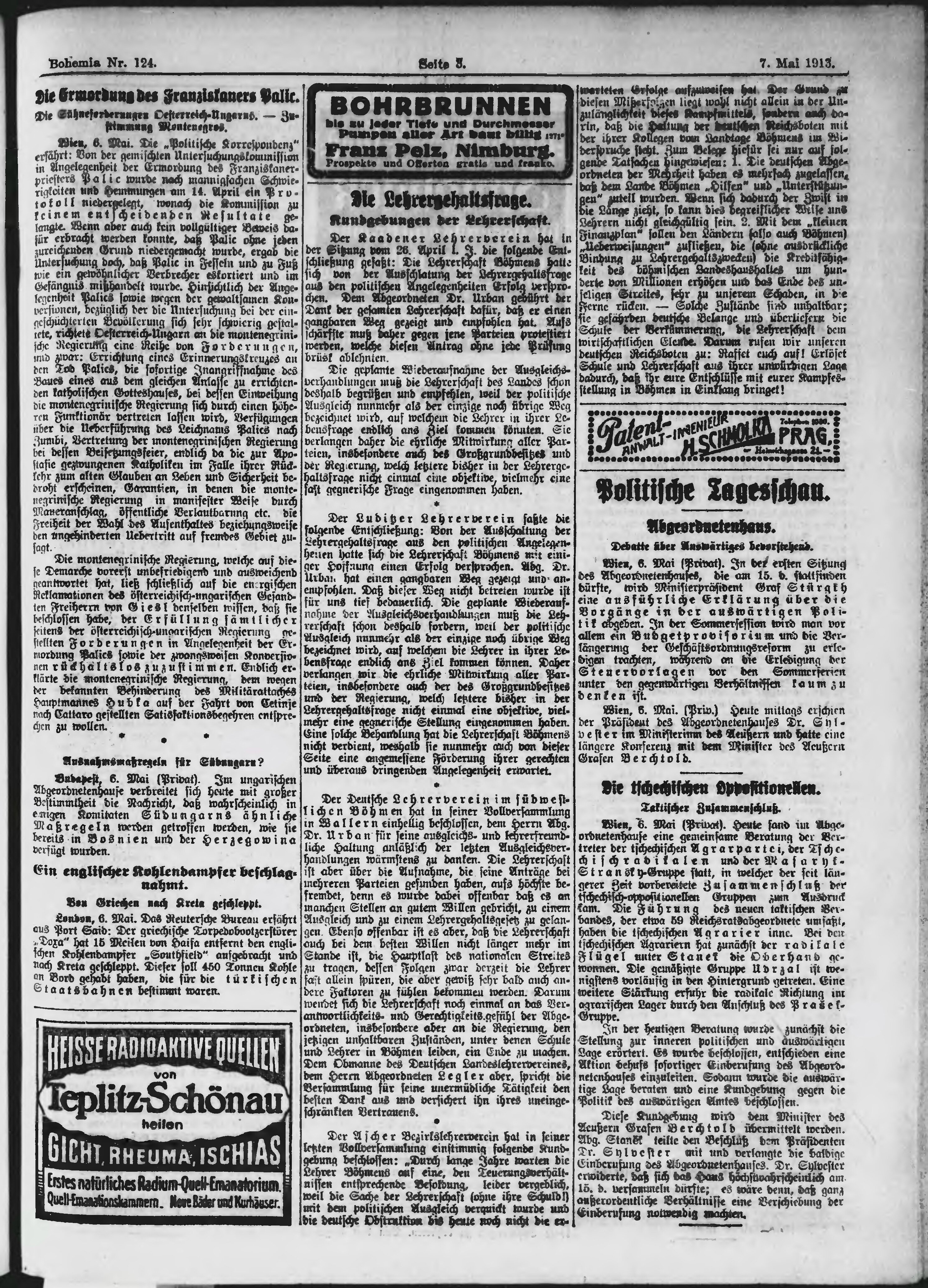 * Datum vydání výtisku: 7.5.1913 Číslo výtisku: 124 Poznámky k výtisku: ranní vydání;