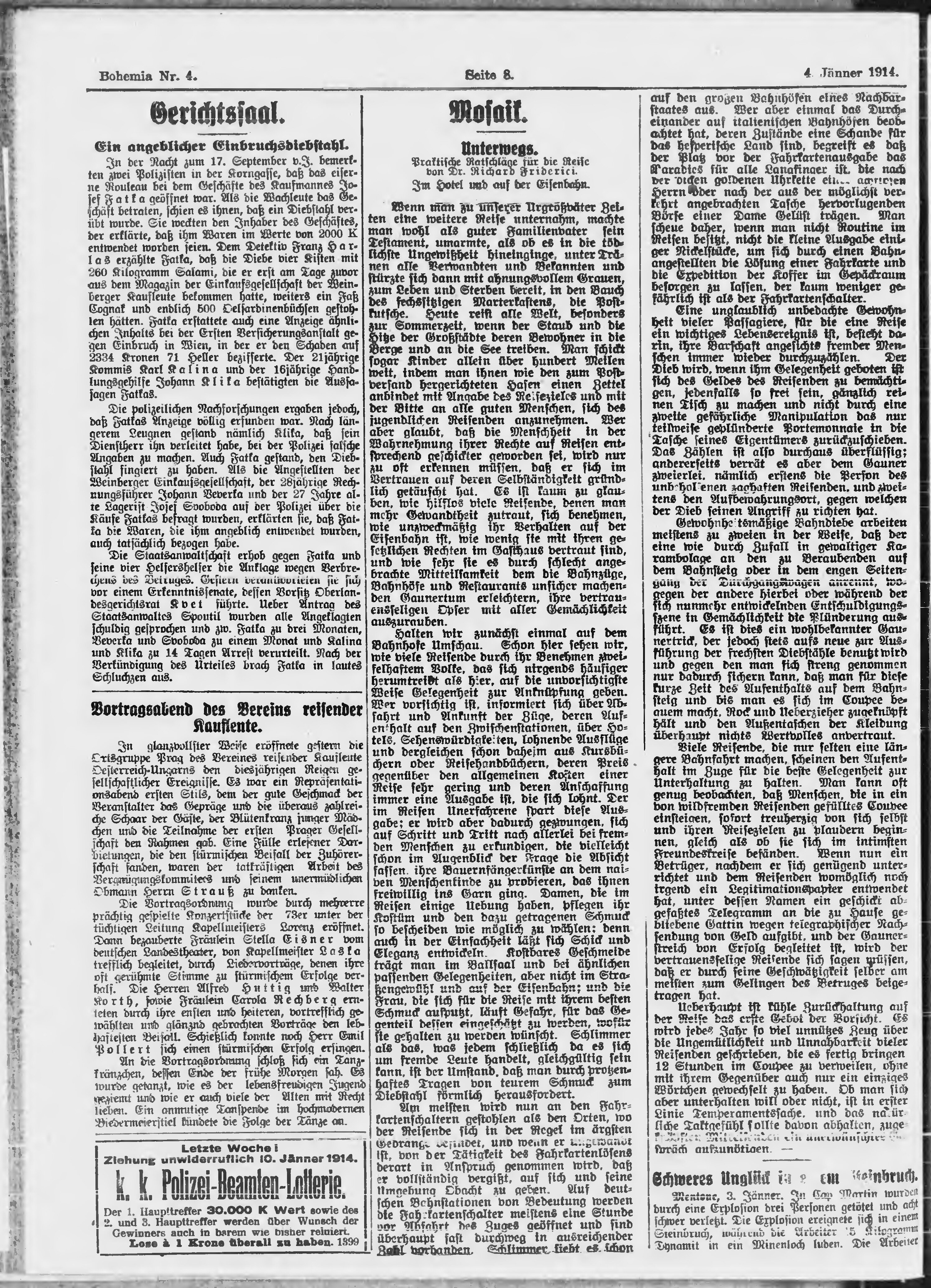 * Datum vydání výtisku: 4.1.1914 Číslo výtisku: 4 Poznámky k výtisku: ranní vydání