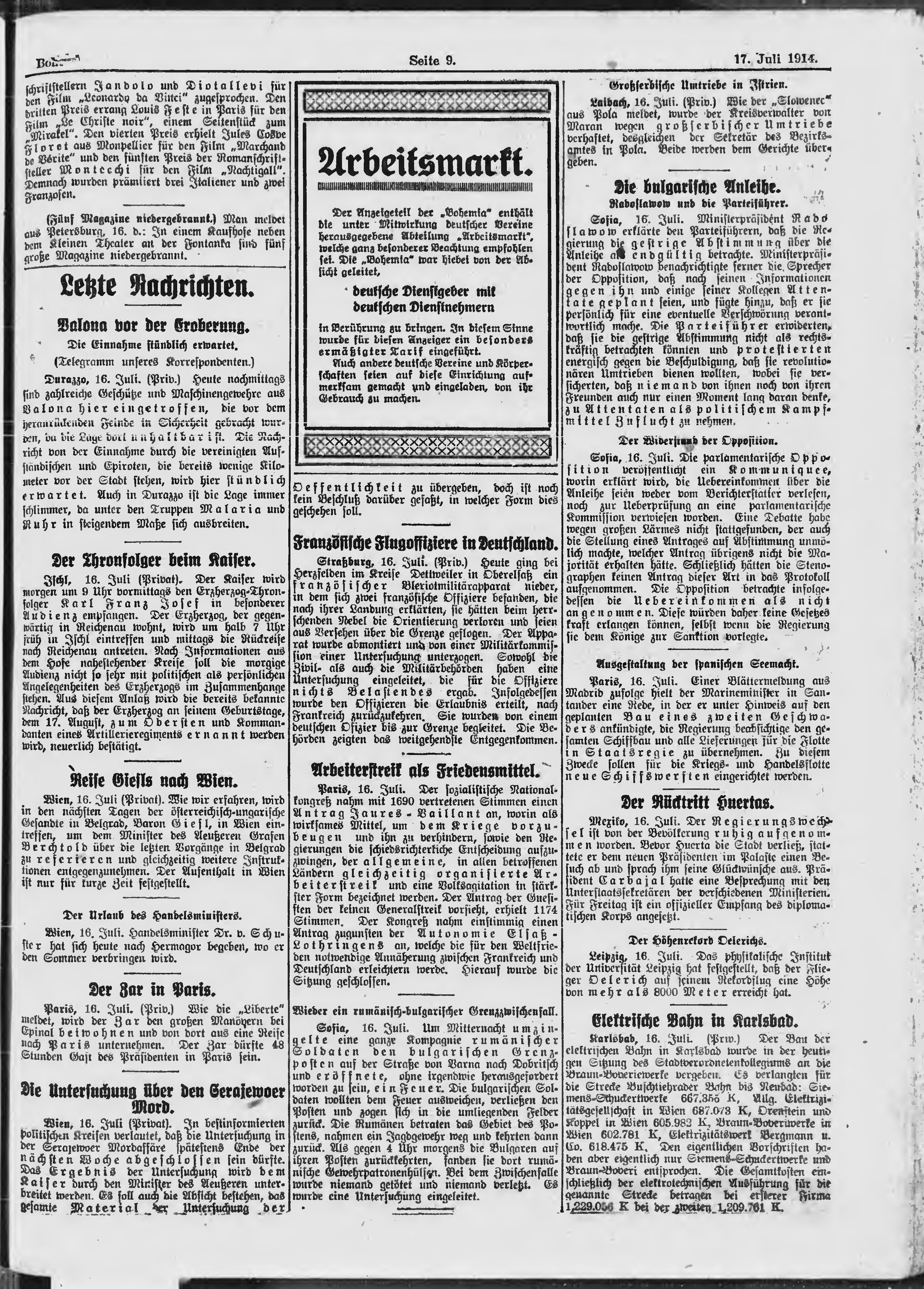 * Datum vydání výtisku: 17.7.1914 Číslo výtisku: 194 Poznámky k výtisku: ranní vydání