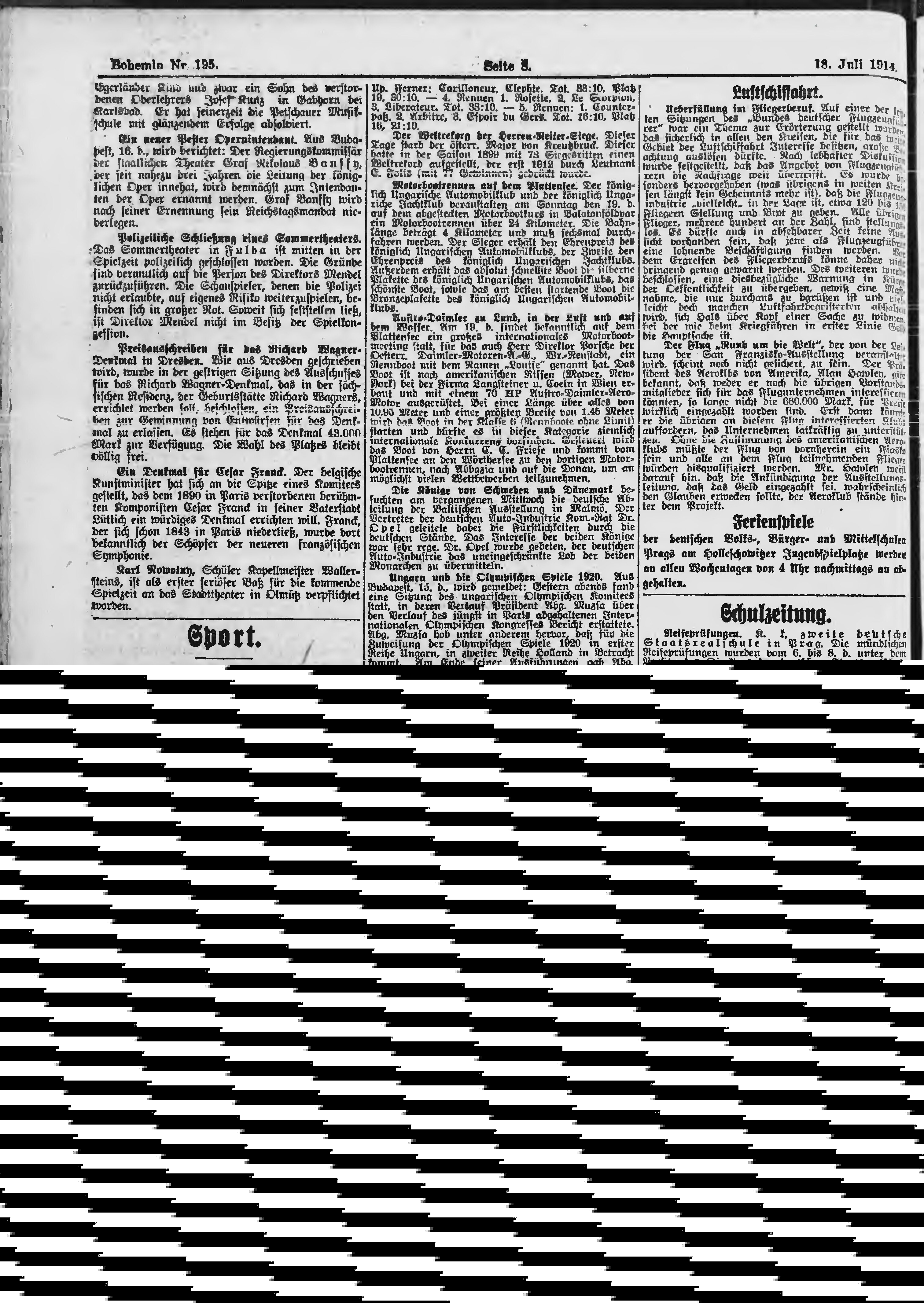 * Datum vydání výtisku: 18.7.1914 Číslo výtisku: 195 Poznámky k výtisku: ranní vydání