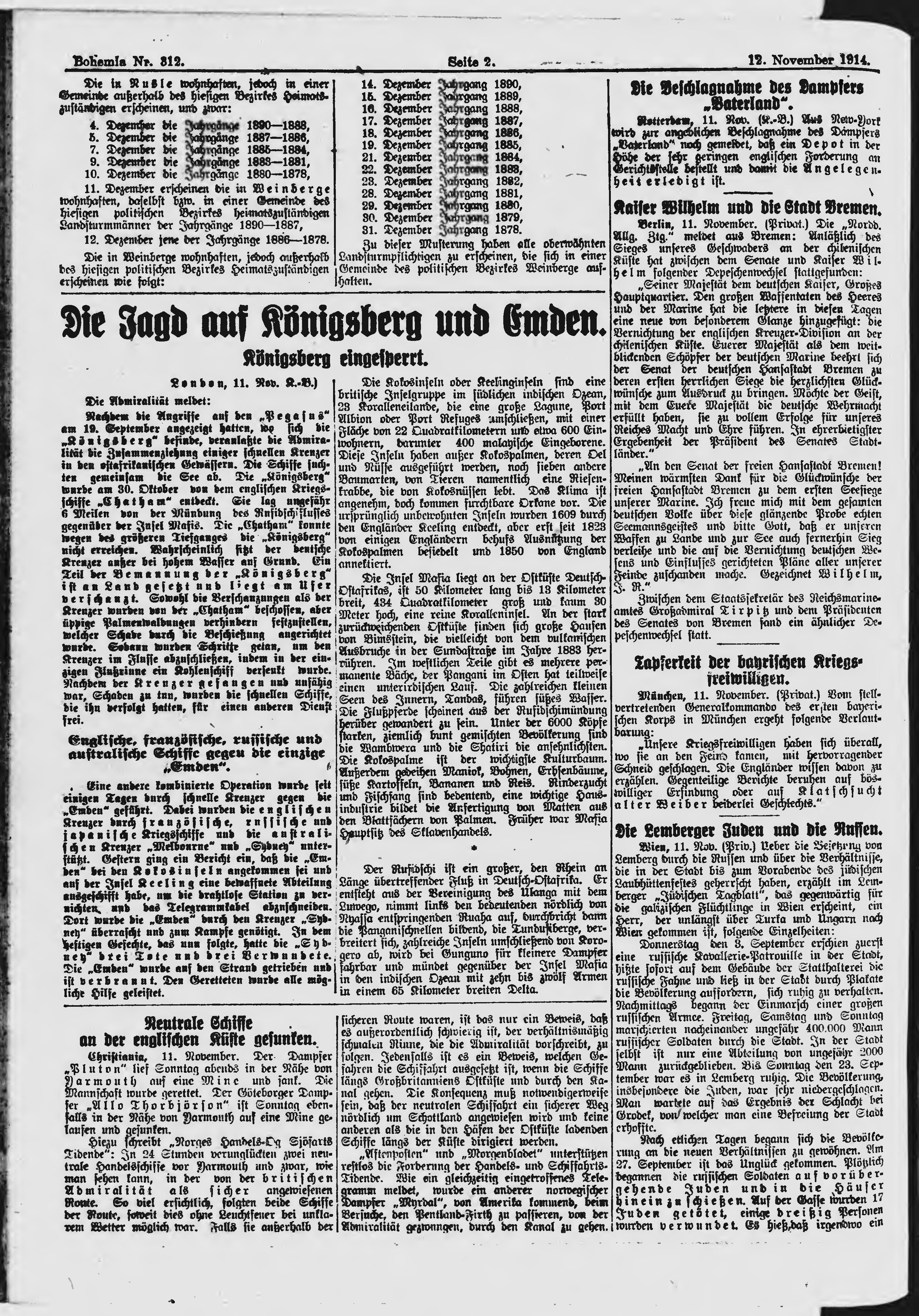 * Datum vydání výtisku: 12.11.1914 Číslo výtisku: 312 Typ výtisku: příloha