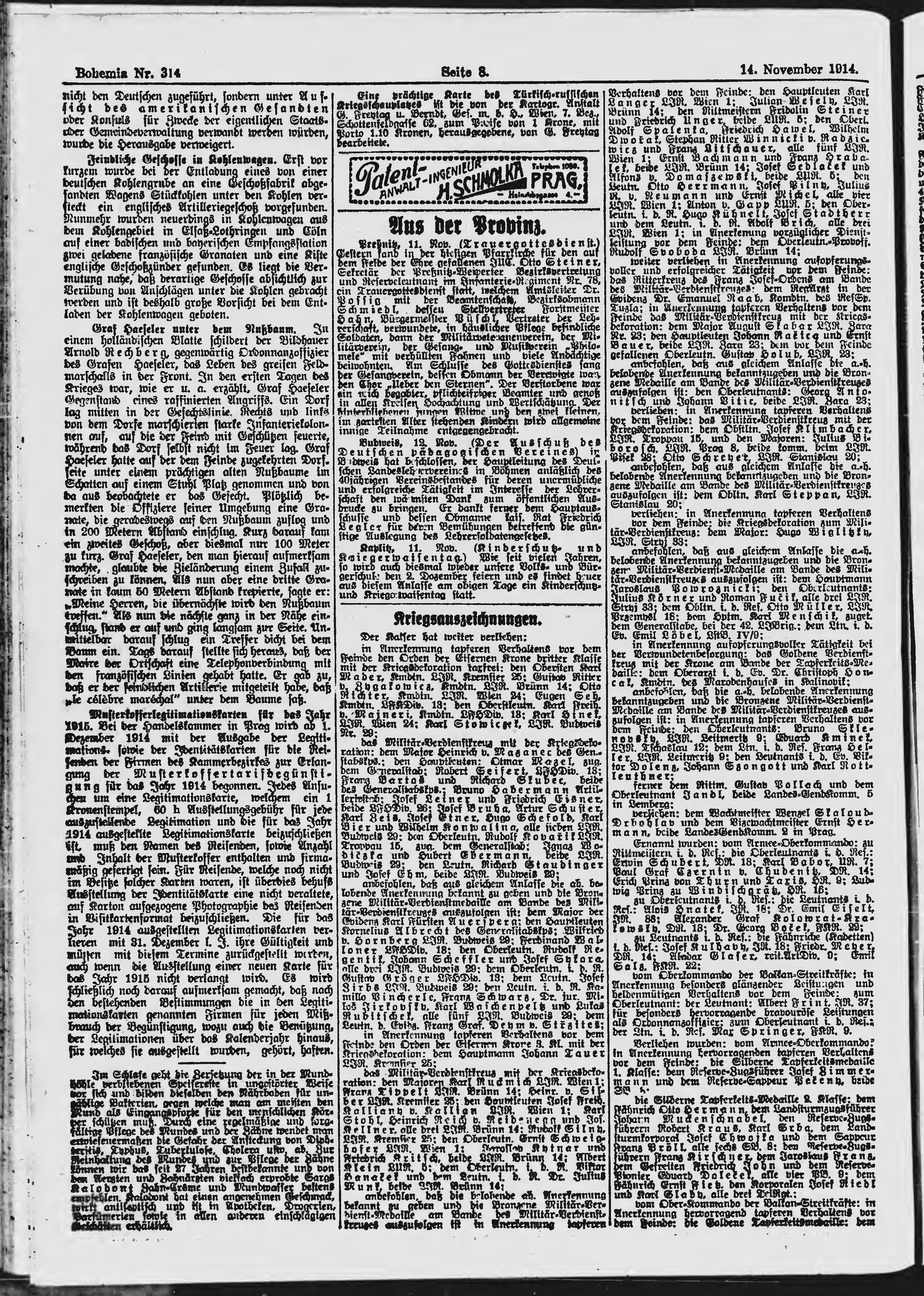 * Datum vydání výtisku: 14.11.1914 Číslo výtisku: 314 Poznámky k výtisku: ranní vydání
