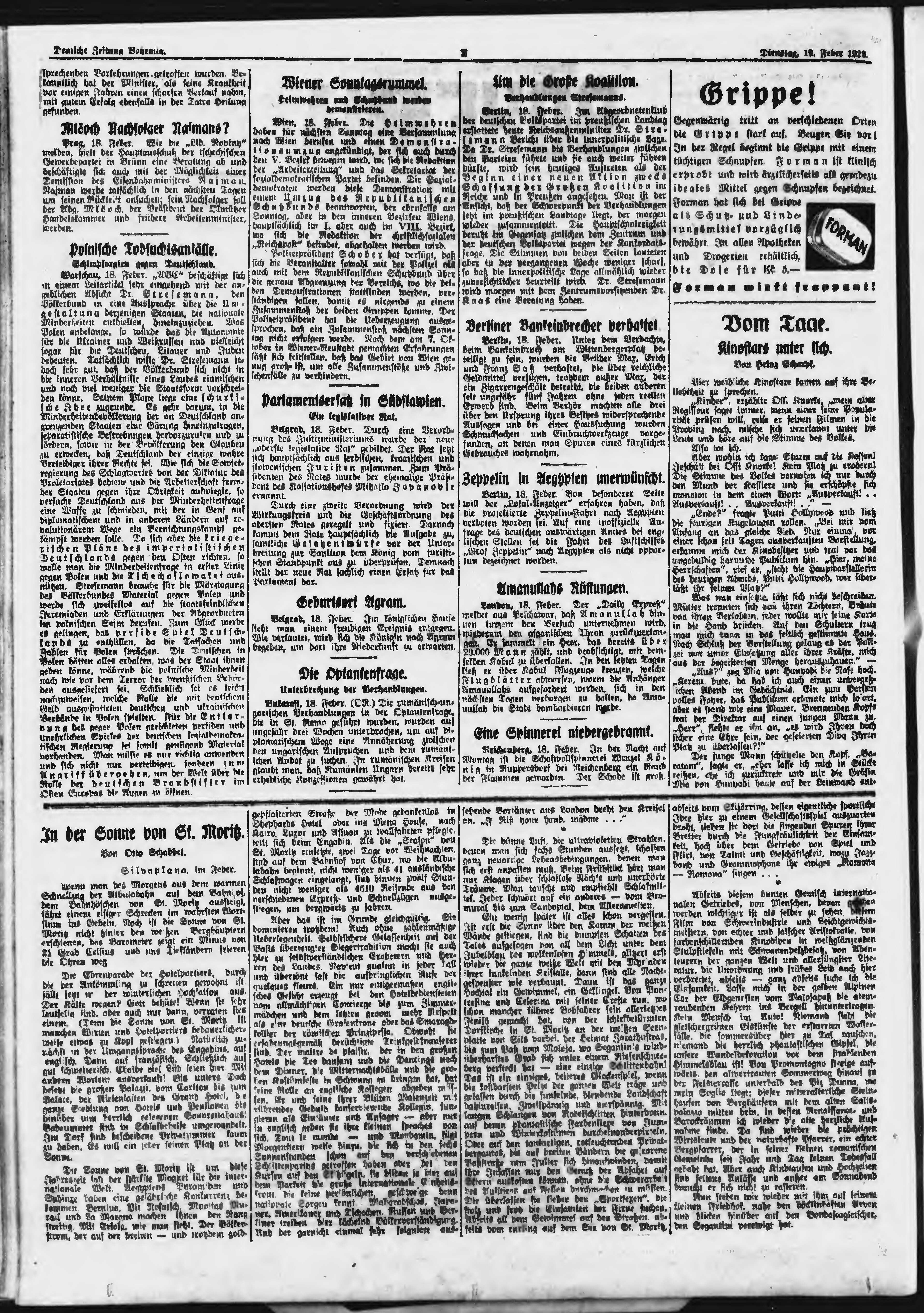 * Datum vydání výtisku: 19.2.1929 Číslo výtisku: 43 Poznámky k výtisku: ranní vydání;