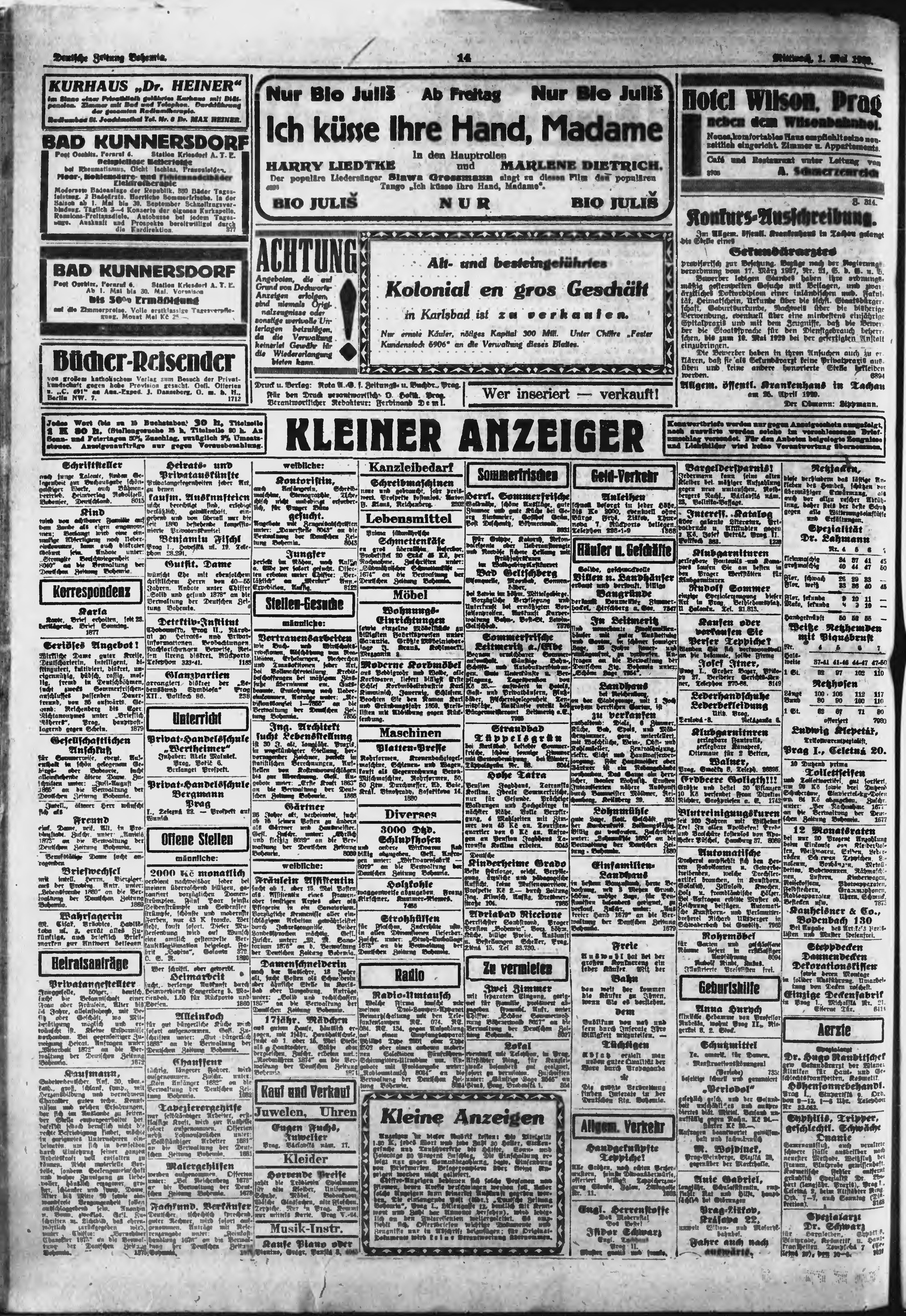 * Datum vydání výtisku: 1.5.1929 Číslo výtisku: 103 Poznámky k výtisku: ranní vydání;