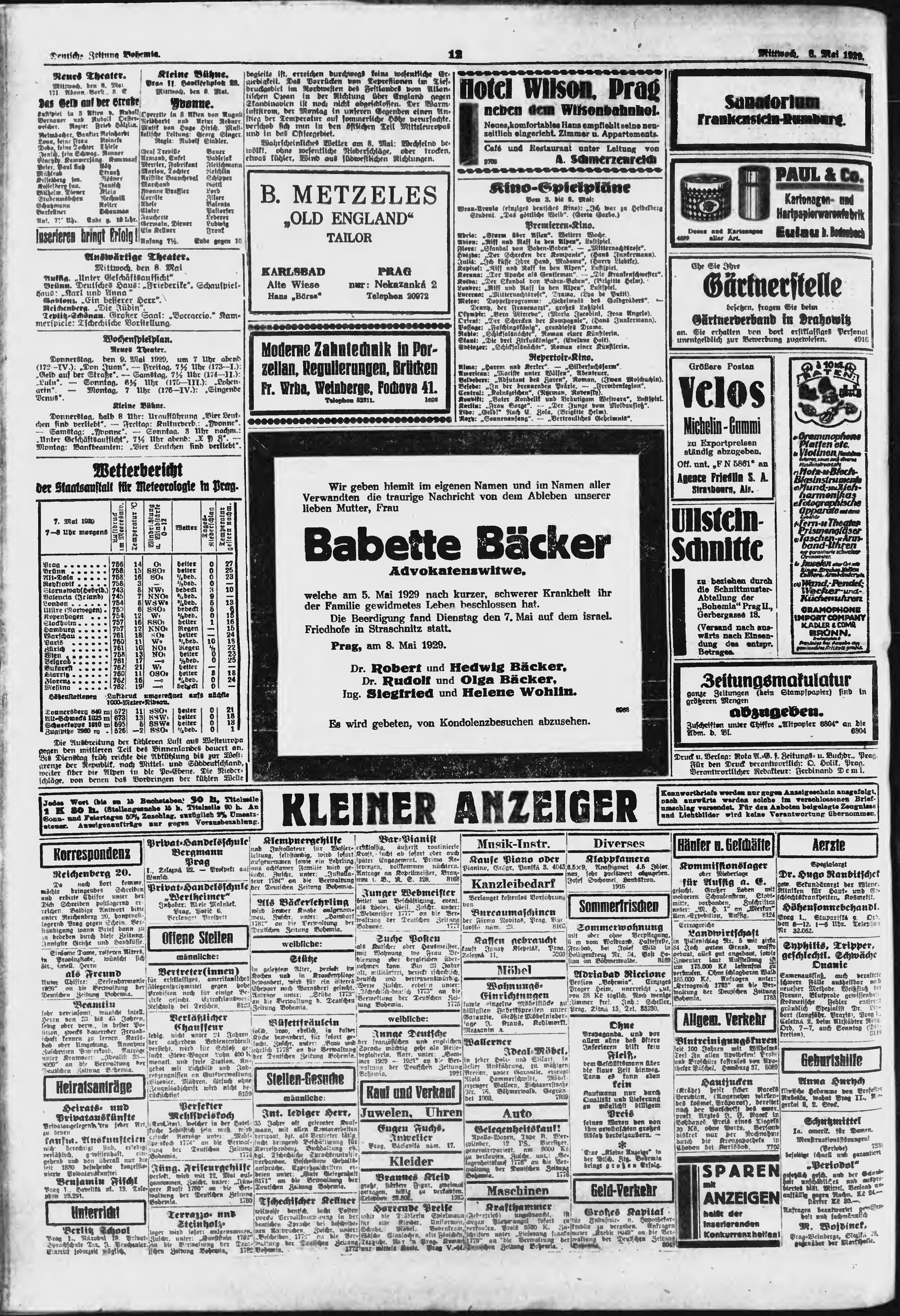 * Datum vydání výtisku: 8.5.1929 Číslo výtisku: 108 Poznámky k výtisku: ranní vydání;