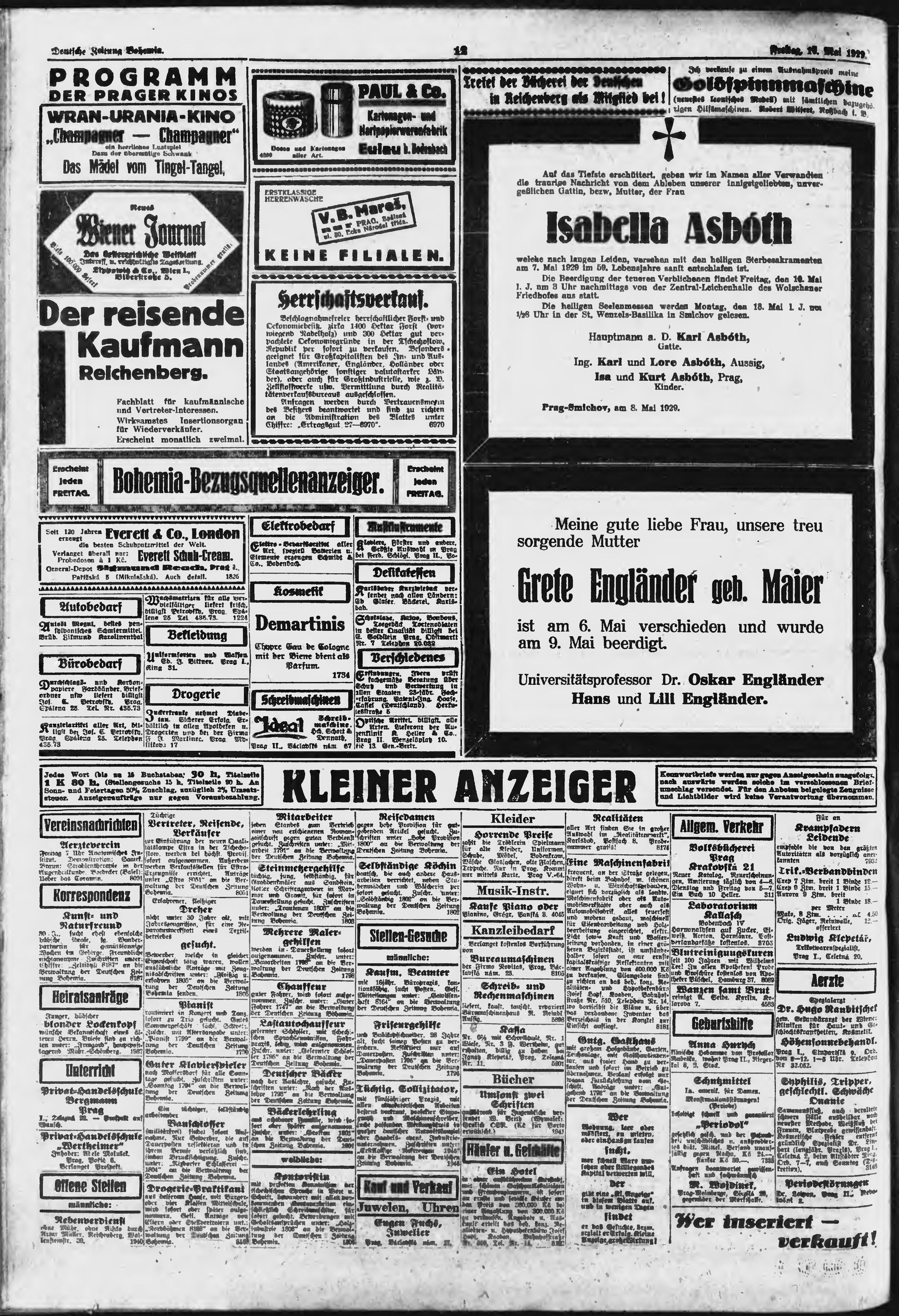 * Datum vydání výtisku: 10.5.1929 Číslo výtisku: 110 Poznámky k výtisku: ranní vydání;