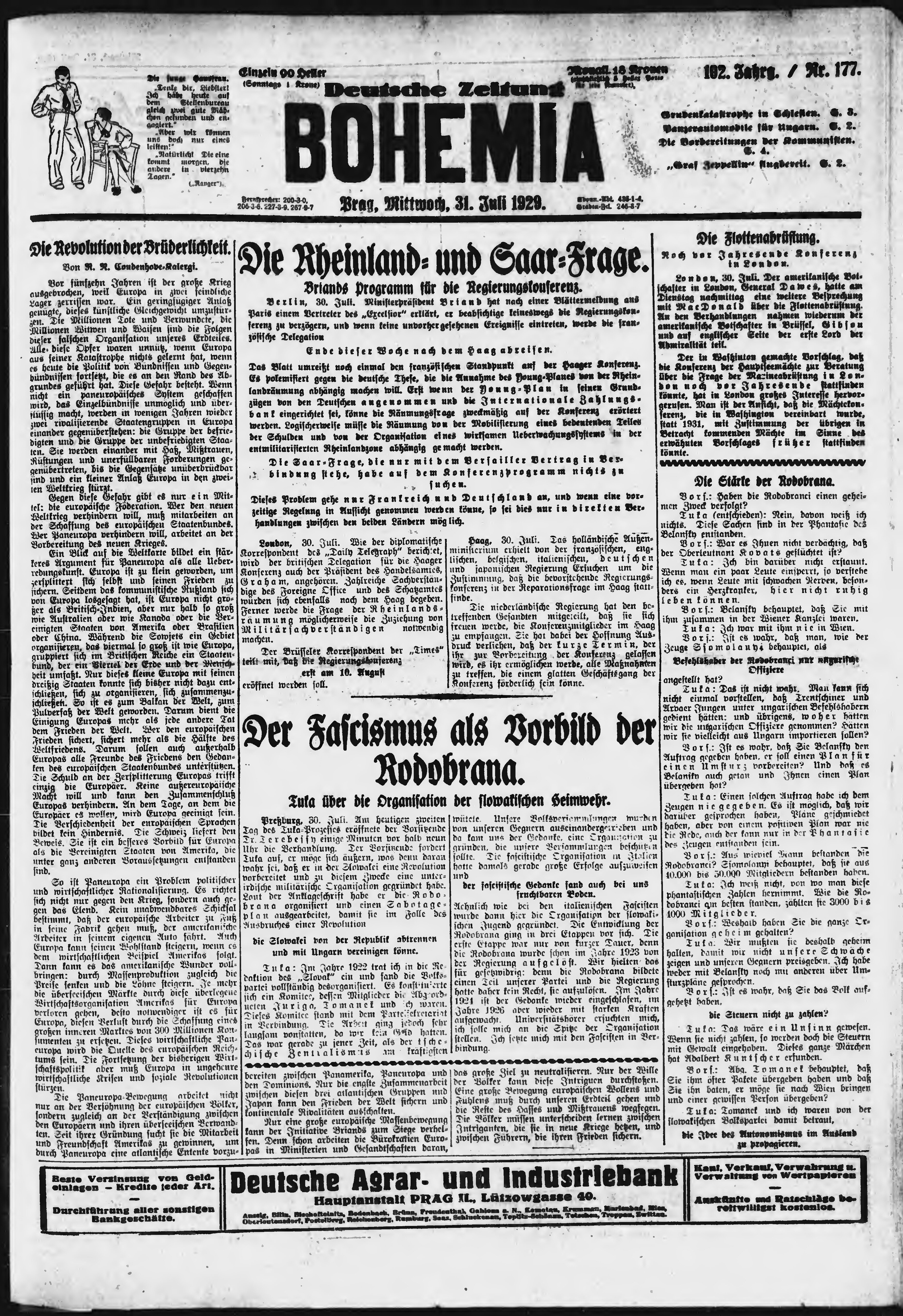 * Datum vydání výtisku: 31.7.1929 Číslo výtisku: 177 Poznámky k výtisku: ranní vydání;