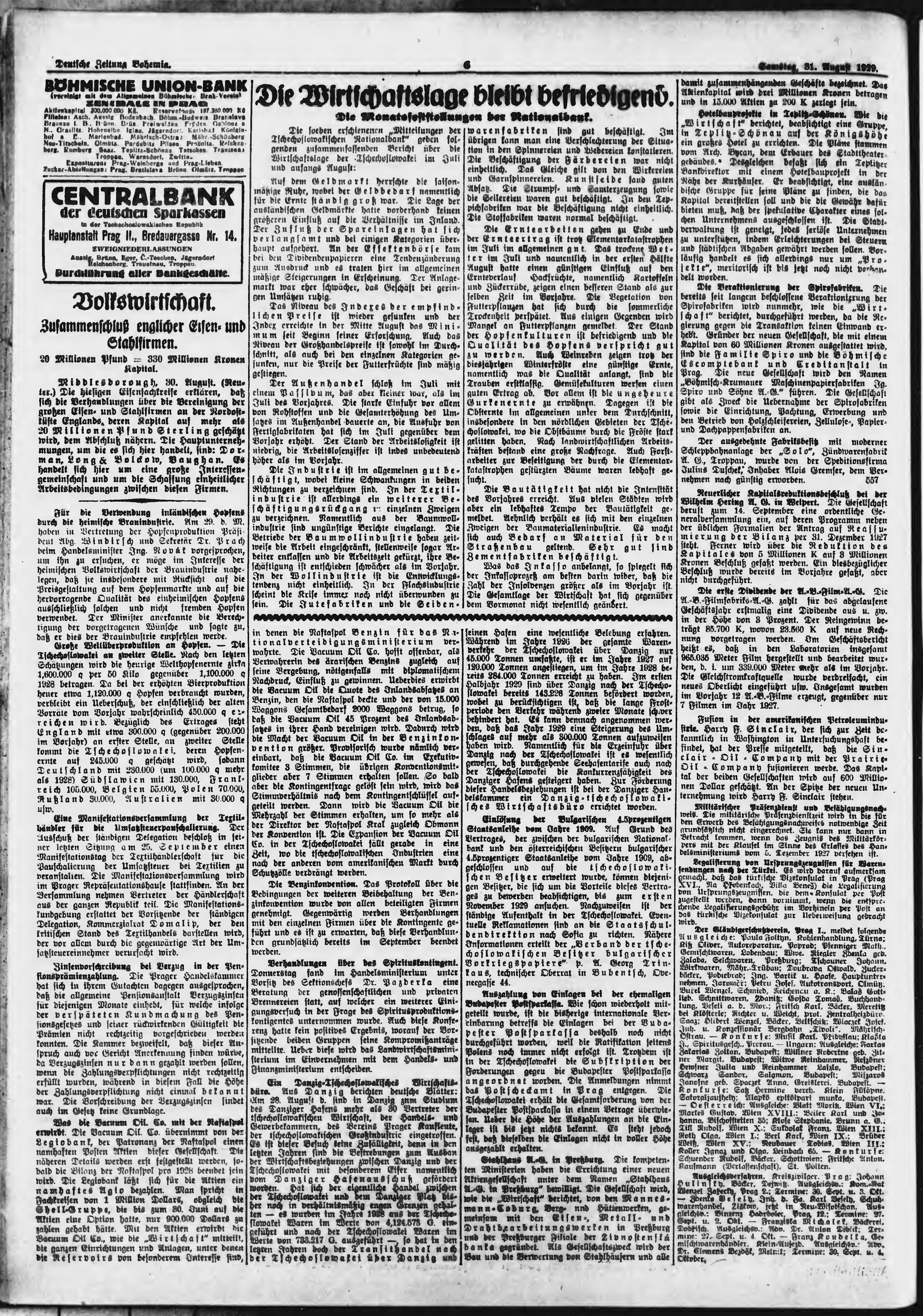 * Datum vydání výtisku: 31.8.1929 Číslo výtisku: 204 Poznámky k výtisku: ranní vydání;