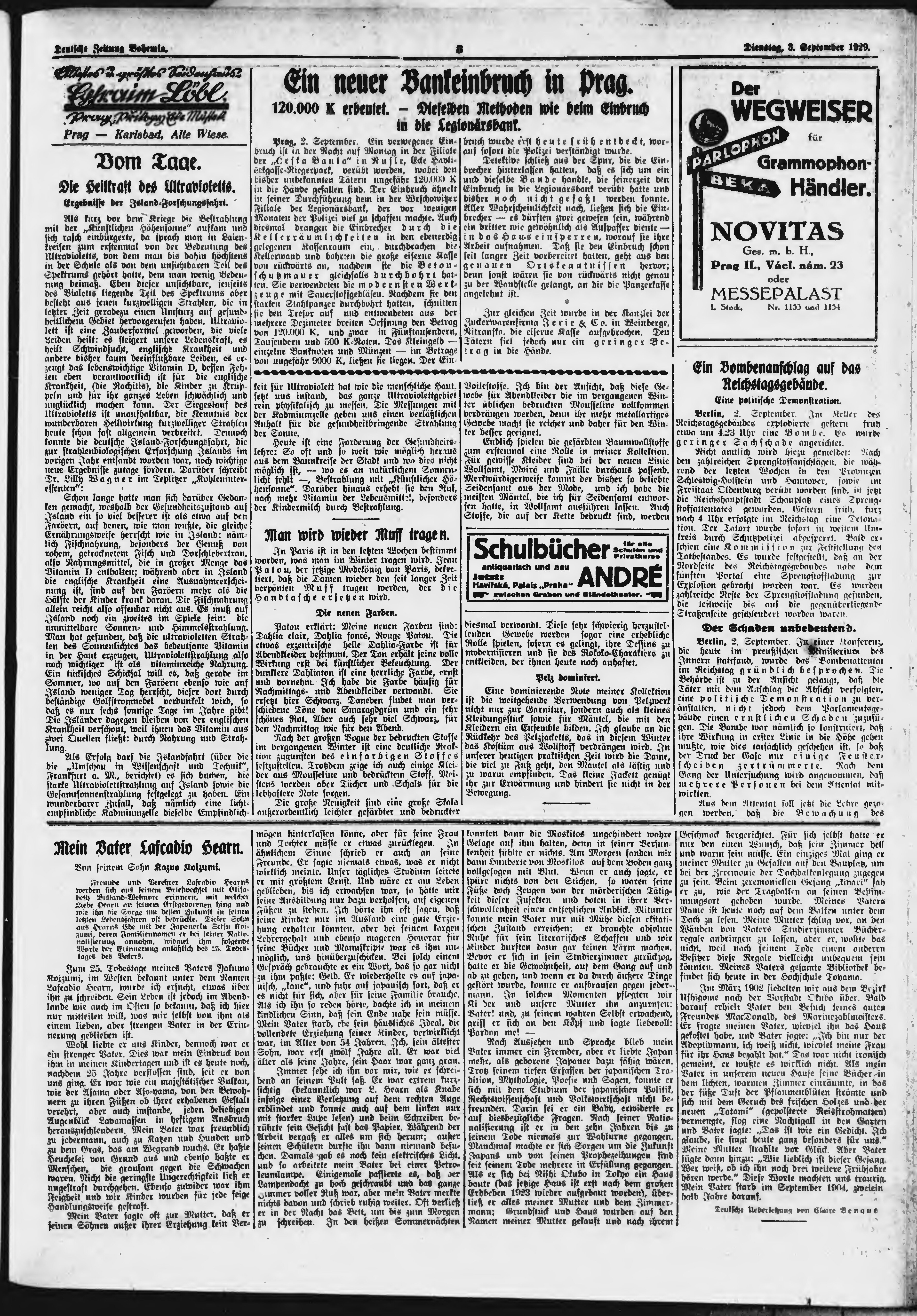 * Datum vydání výtisku: 3.9.1929 Číslo výtisku: 206 Poznámky k výtisku: ranní vydání;