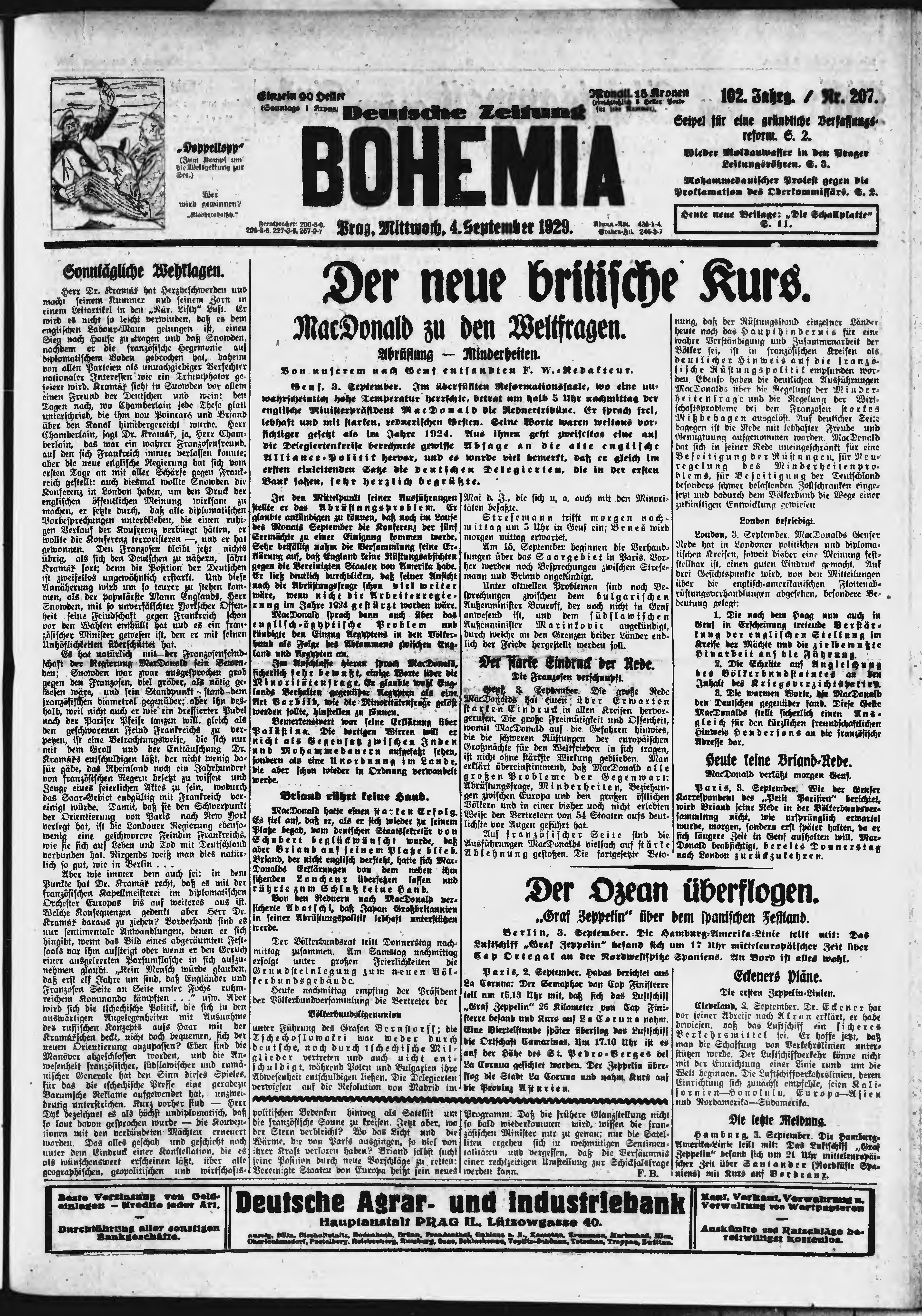 * Datum vydání výtisku: 4.9.1929 Číslo výtisku: 207 Poznámky k výtisku: ranní vydání;