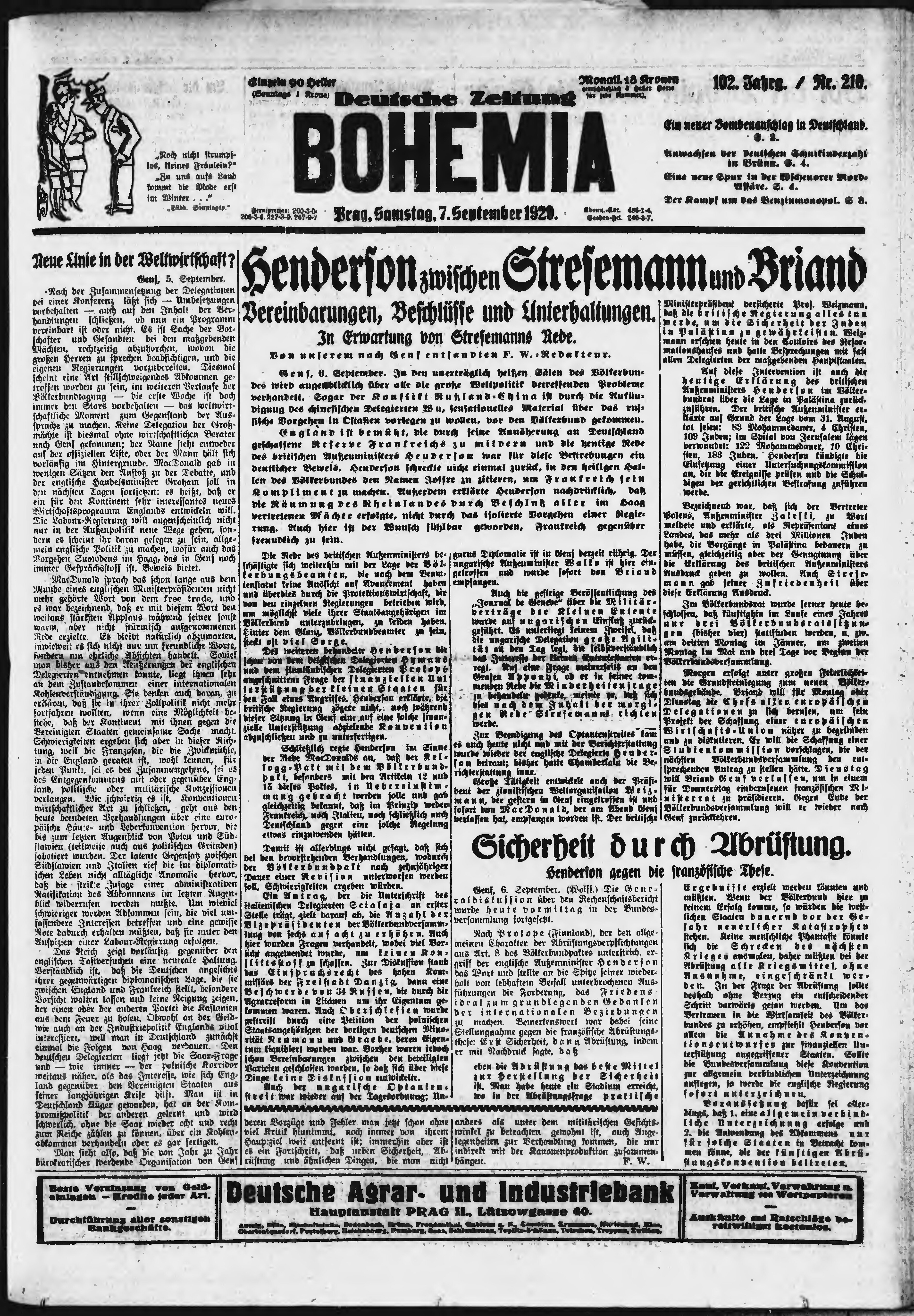 * Datum vydání výtisku: 7.9.1929 Číslo výtisku: 210 Poznámky k výtisku: ranní vydání;