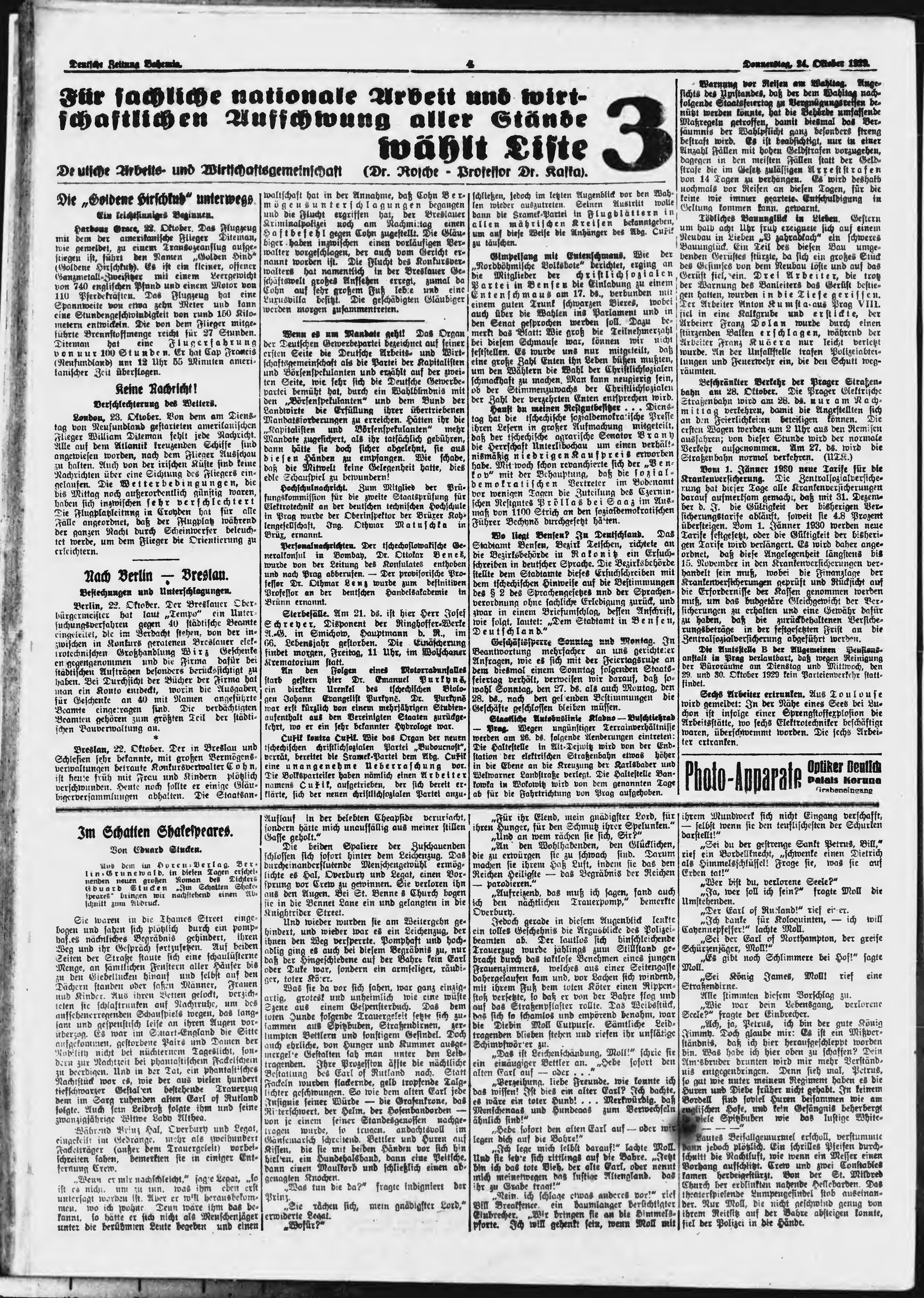 * Datum vydání výtisku: 24.10.1929 Číslo výtisku: 249 Poznámky k výtisku: ranní vydání;