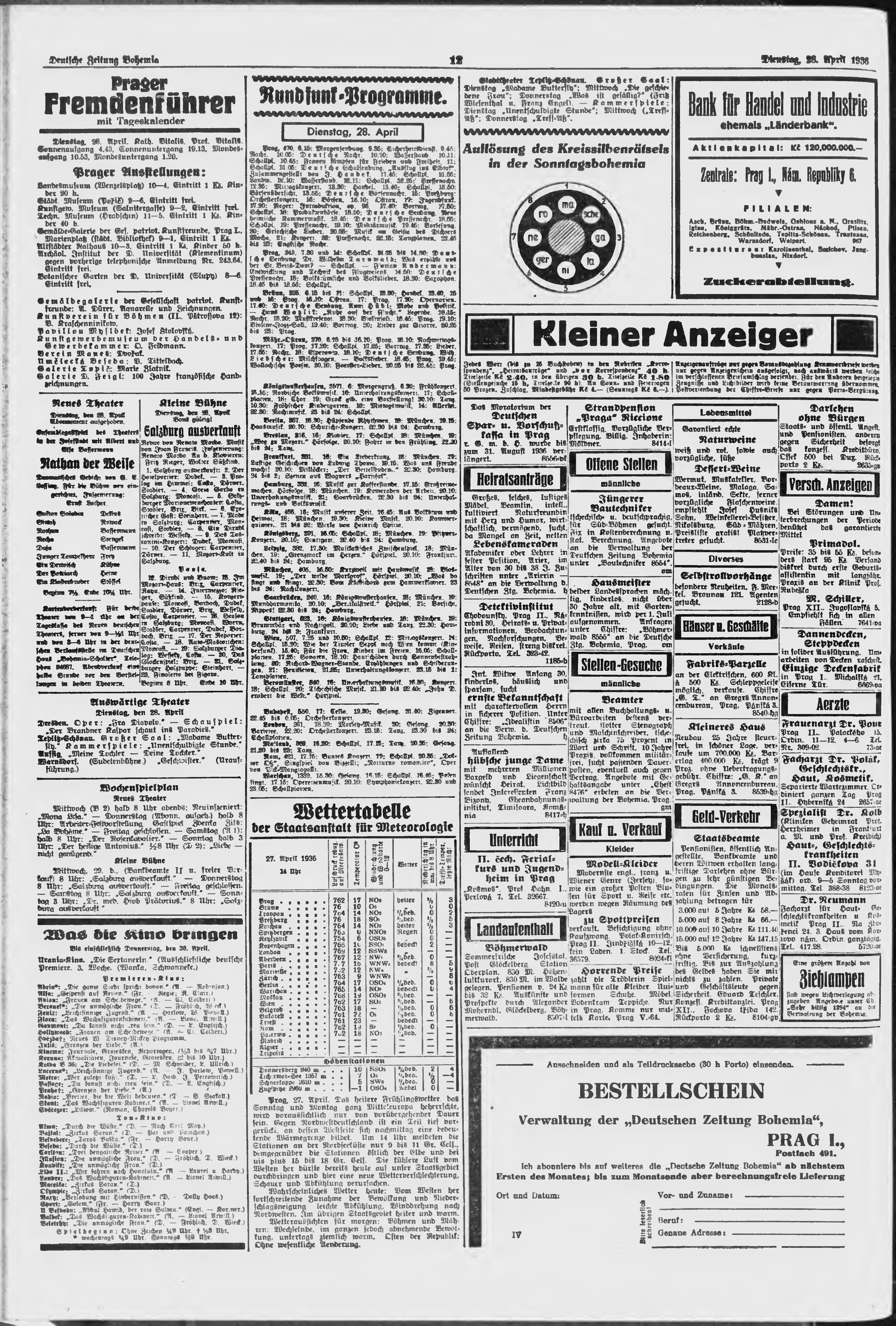 * Datum vydání výtisku: 28.4.1936 Číslo výtisku: 100 Poznámky k výtisku: ranní vydání;