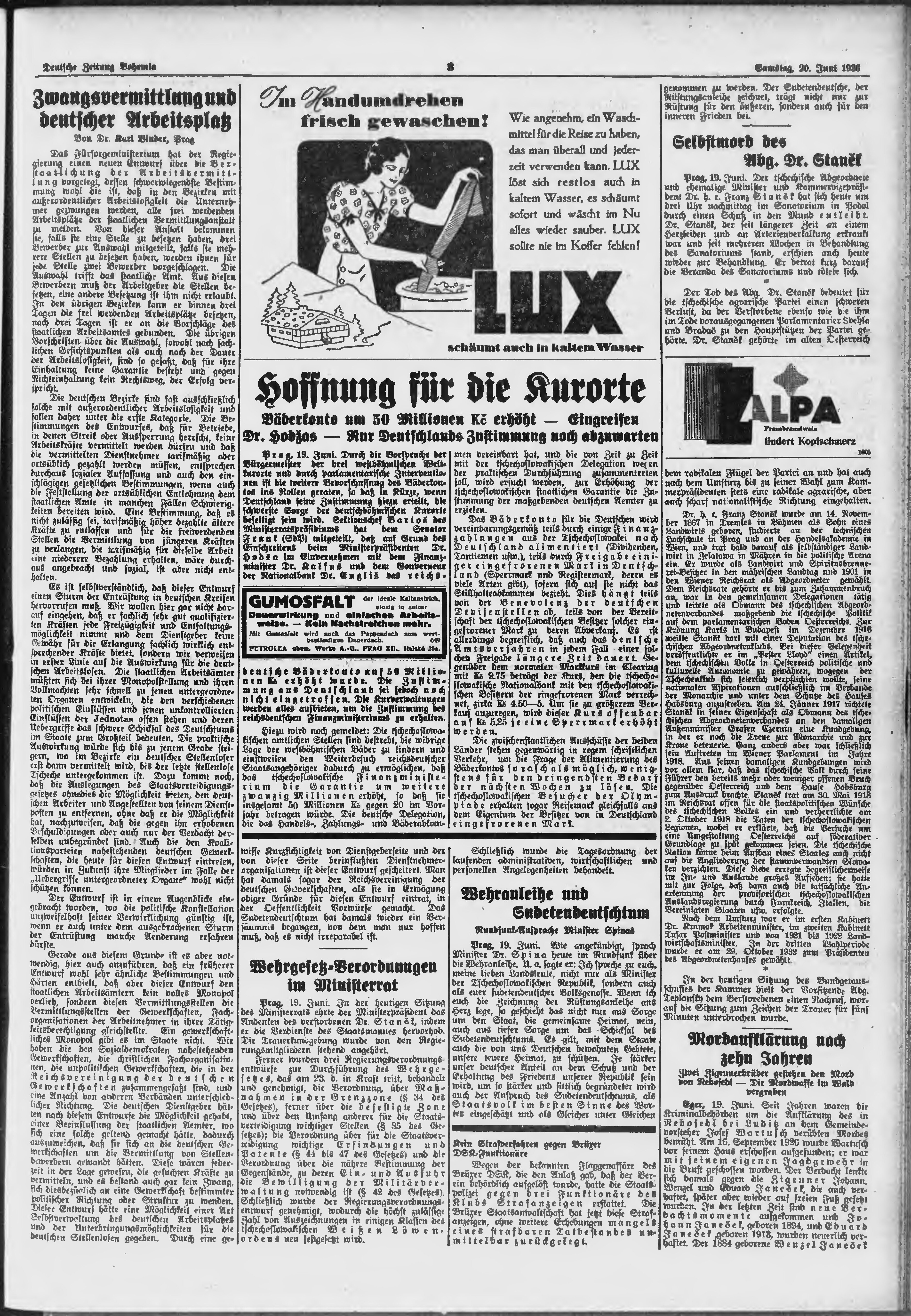 * Datum vydání výtisku: 20.6.1936 Číslo výtisku: 144 Poznámky k výtisku: ranní vydání;