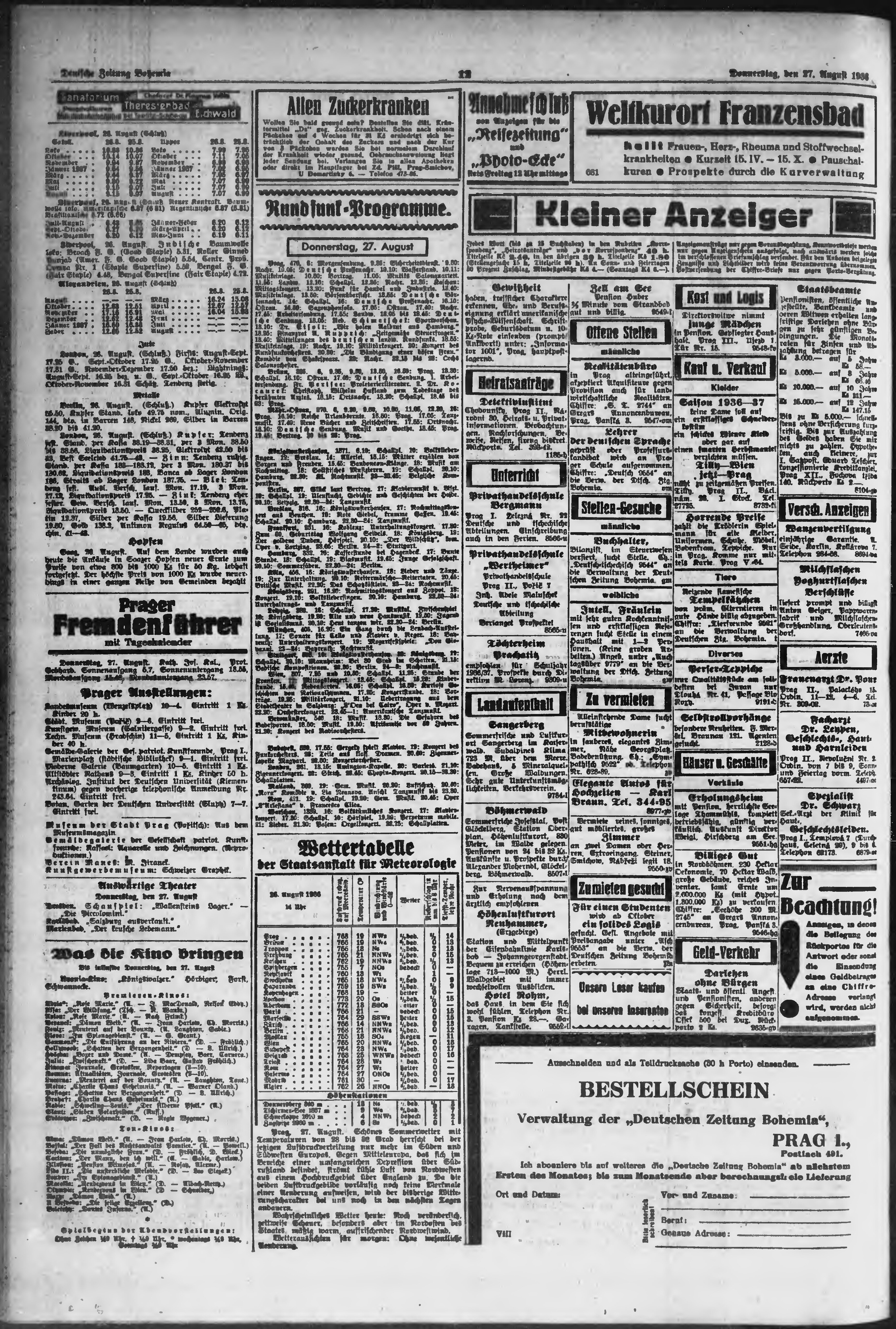 * Datum vydání výtisku: 27.8.1936 Číslo výtisku: 199 Poznámky k výtisku: ranní vydání;