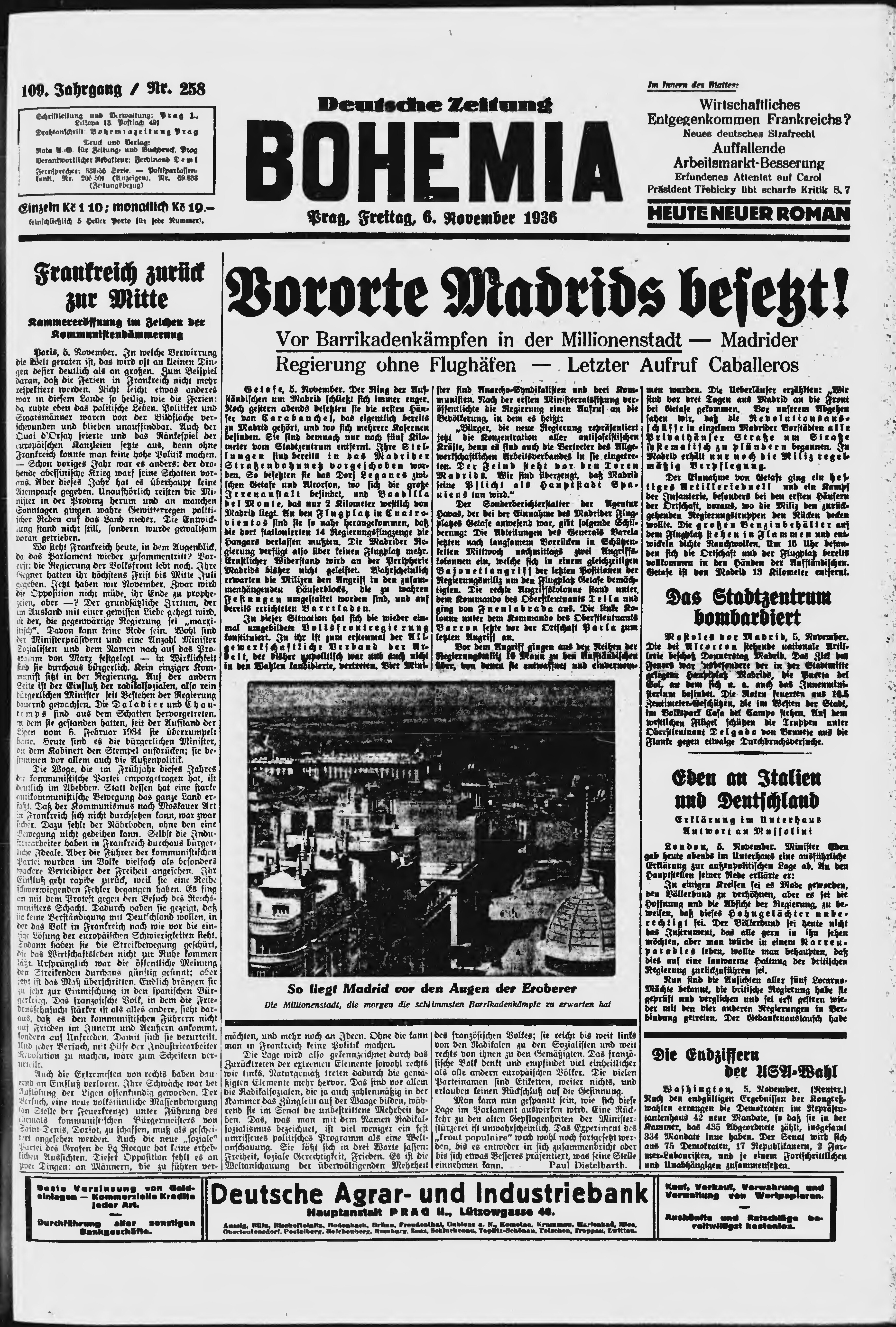 * Datum vydání výtisku: 6.11.1936 Číslo výtisku: 258 Poznámky k výtisku: ranní vydání;